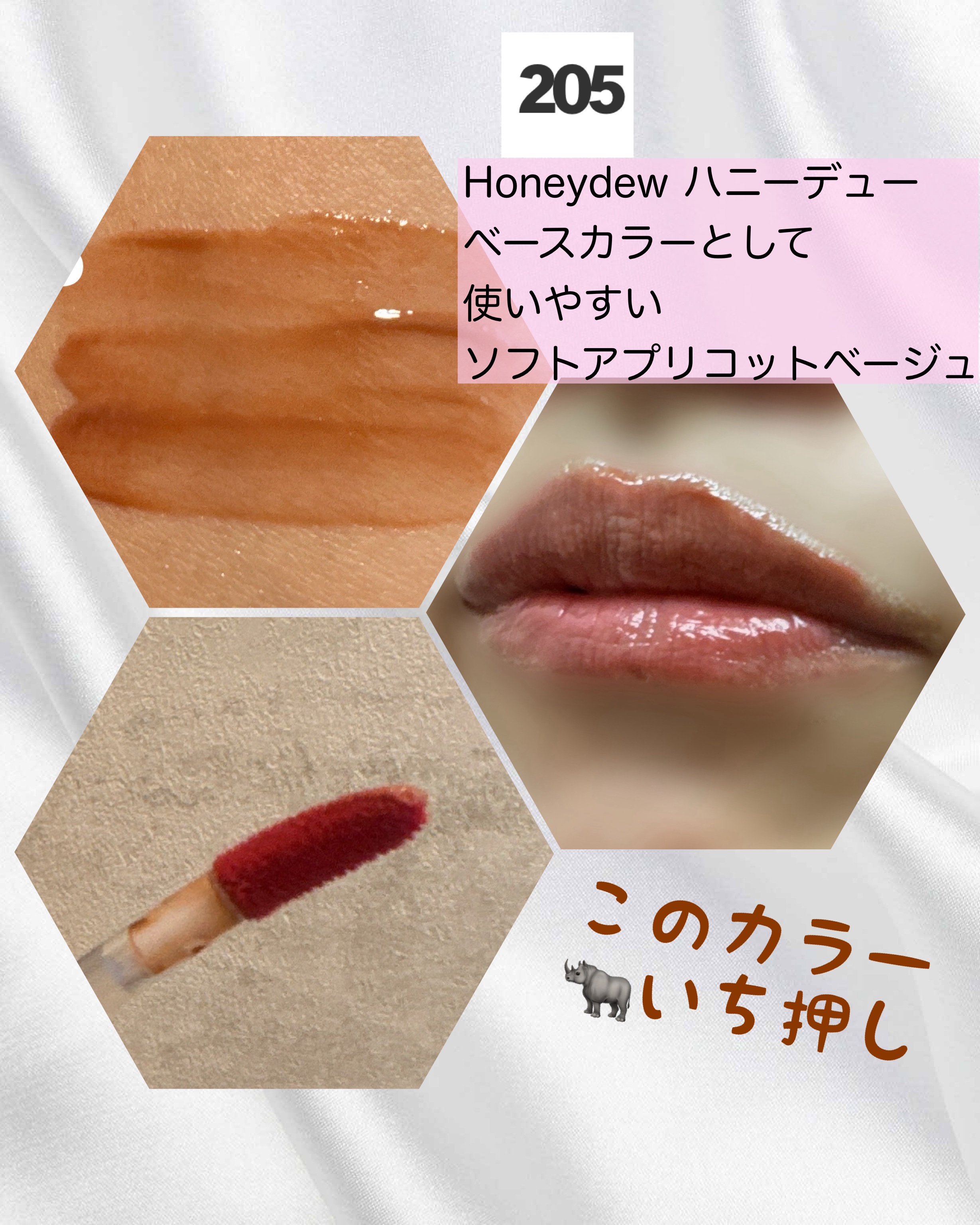 - <201 フェアリー> ダイマージリノール酸ジイソステアリル、ジフェニルシロキシフェニルトリメチコン、ビスジグリセリルポリアシルアジペート-2、水、ジフェニルジメチコン、水添ポリイソブテン、セチルPEG/PPG-10/1ジメチコン、ポリソルベート60、ペンチレングリコール、グリセリン、イソステアリン酸ポリグリセリル-4、フェノキシエタノール、1,2-ヘキサンジオール、セテアレス-20、酸化チタン (CI 77891)、(アクリル酸ヒドロキシエチル/アクリロイルジメチルタウリンNa)コポリマー、ステビオシド、スクワラン、香料、ジラウラミドグルタミドリシンNa、エチルヘキシルグリセリン、エチレンジアミンジコハク酸3Na、赤色227号 (CI 17200)、水酸化Al、黄色5号 (CI 15985)、ポリアクリル酸アンモニウム、イソステアリン酸ソルビタン、黄色4号 (CI 19140)、BG、赤色223号 (CI 45410)、青色1号 (CI 42090)、アラントイン、パンテノール、ツボクサエキス、ヒアルロン酸、加水分解ヒアルロン酸、ヒアルロン酸Na <203 バブリー> ダイマージリノール酸ジイソステアリル、ジフェニルシロキシフェニルトリメチコン、ビスジグリセリルポリアシルアジペート-2、水、ジフェニルジメチコン、水添ポリイソブテン、セチルPEG/PPG-10/1ジメチコン、ポリソルベート60、ペンチレングリコール、グリセリン、イソステアリン酸ポリグリセリル-4、フェノキシエタノール、1,2-ヘキサンジオール、セテアレス-20、(アクリル酸ヒドロキシエチル/アクリロイルジメチルタウリンNa)コポリマー、ステビオシド、酸化チタン (CI 77891)、スクワラン、香料、ジラウラミドグルタミドリシンNa、エチルヘキシルグリセリン、赤色227号 (CI 17200)、エチレンジアミンジコハク酸3Na、黄色5号 (CI 15985)、イソステアリン酸ソルビタン、水酸化Al、ポリアクリル酸アンモニウム、黄色4号 (CI 19140)、BG、青色1号 (CI 42090)、アラントイン、パンテノール、ツボクサエキス、ヒアルロン酸、加水分解ヒアルロン酸、ヒアルロン酸Na <204 レア> ダイマージリノール酸ジイソステアリル、ジフェニルシロキシフェニルトリメチコン、ビスジグリセリルポリアシルアジペート-2、水、ジフェニルジメチコン、水添ポリイソブテン、セチルPEG/PPG-10/1ジメチコン、ポリソルベート60、ペンチレングリコール、グリセリン、イソステアリン酸ポリグリセリル-4、フェノキシエタノール、1,2-ヘキサンジオール、セテアレス-20、(アクリル酸ヒドロキシエチル/アクリロイルジメチルタウリンNa)コポリマー、酸化チタン (CI 77891)、ステビオシド、スクワラン、香料、ジラウラミドグルタミドリシンNa、エチルヘキシルグリセリン、赤色227号 (CI 17200)、黄色5号 (CI 15985)、エチレンジアミンジコハク酸3Na、イソステアリン酸ソルビタン、水酸化Al、ポリアクリル酸アンモニウム、黄色4号 (CI 19140)、青色1号 (CI 42090)、BG、アラントイン、パンテノール、ツボクサエキス、ヒアルロン酸、加水分解ヒアルロン酸、ヒアルロン酸Na <205 ハニーデュー> ダイマージリノール酸ジイソステアリル、ジフェニルシロキシフェニルトリメチコン、ビスジグリセリルポリアシルアジペート-2、水、ジフェニルジメチコン、水添ポリイソブテン、セチルPEG/PPG-10/1ジメチコン、ポリソルベート60、ペンチレングリコール、グリセリン、イソステアリン酸ポリグリセリル-4、フェノキシエタノール、1,2-ヘキサンジオール、セテアレス-20、(アクリル酸ヒドロキシエチル/アクリロイルジメチルタウリンNa)コポリマー、酸化チタン (CI 77891)、ステビオシド、スクワラン、香料、ジラウラミドグルタミドリシンNa、エチルヘキシルグリセリン、赤色227号 (CI 17200)、黄色5号 (CI 15985)、エチレンジアミンジコハク酸3Na、イソステアリン酸ソルビタン、水酸化Al、ポリアクリル酸アンモニウム、黄色4号 (CI 19140)、青色1号 (CI 42090)、BG、アラントイン、パンテノール、ツボクサエキス、ヒアルロン酸、加水分解ヒアルロン酸、ヒアルロン酸Na <206 トフィー> ダイマージリノール酸ジイソステアリル、ジフェニルシロキシフェニルトリメチコン、ビスジグリセリルポリアシルアジペート-2、水、ジフェニルジメチコン、水添ポリイソブテン、セチルPEG/PPG-10/1ジメチコン、ポリソルベート60、ペンチレングリコール、グリセリン、イソステアリン酸ポリグリセリル-4、フェノキシエタノール、1,2-ヘキサンジオール、セテアレス-20、(アクリル酸ヒドロキシエチル/アクリロイルジメチルタウリンNa)コポリマー、ステビオシド、スクワラン、香料、ジラウラミドグルタミドリシンNa、酸化チタン (CI 77891)、エチルヘキシルグリセリン、黄色5号 (CI 15985)、エチレンジアミンジコハク酸3Na、黄色4号 (CI 19140)、赤色227号 (CI 17200)、イソステアリン酸ソルビタン、赤色223号 (CI 45410)、青色1号 (CI 42090)、水酸化Al、ポリアクリル酸アンモニウム、BG、アラントイン、パンテノール、ツボクサエキス、ヒアルロン酸、加水分解ヒアルロン酸、ヒアルロン酸Na <207 フレイム> ダイマージリノール酸ジイソステアリル、ジフェニルシロ