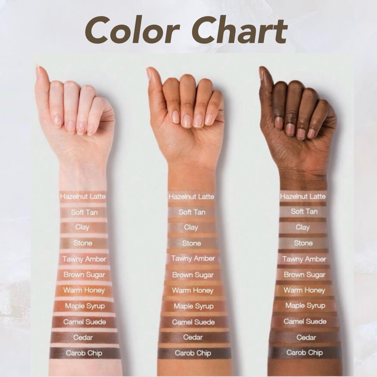 - <クレイ(Clay)> 水、イソノナン酸イソノニル、イソヘキサデカン、(ビニルジメチコン/メチコンシルセスキオキサン)クロスポリマー、イソドデカン、グリセリン、トリメリト酸トリトリデシル、セチルPEG/PPG-10/1ジメチコン、トリメチルシロキシケイ酸、PG、窒化ホウ素、フェノキシエタノール、ジメチコン、フェニルトリメチコン、PEG-10ジメチコン、セスキオレイン酸ソルビタン、合成フルオロフロゴパイト、(アクリレーツ/ジメチコン)コポリマー、トリメトキシカプリリルシラン、ジステアルジモニウムヘクトライト、トリエトキシカプリリルシラン、エチルヘキシルグリセリン、ジメチルシリル化シリカ、酢酸トコフェロール、シリカ、マイカ、炭酸プロピレン、香料、メチコン、トコフェロール、酸化チタン、酸化鉄 <ゴールデンサン(Golden Sun)> 水、イソノナン酸イソノニル、シクロペンタシロキサン、イソヘキサデカン、(ビニルジメチコン/メチコンシルセスキオキサン)クロスポリマー、グリセリン、トリメリト酸トリトリデシル、セチルPEG/PPG-10/1ジメチコン、トリメチルシロキシケイ酸、PG、窒化ホウ素、フェノキシエタノール、フェニルトリメチコン、PEG-10ジメチコン、セスキオレイン酸ソルビタン、合成フルオロフロゴパイト、(アクリレーツ/ジメチコン)コポリマー、トリエトキシカプリリルシラン、トリメトキシカプリリルシラン、ジステアルジモニウムヘクトライト、酢酸トコフェロール、エチルヘキシルグリセリン、ジメチルシリル化シリカ、シリカ、マイカ、炭酸プロピレン、香料、ジメチコン、メチコン、酸化チタン、酸化鉄 <ストーン(Stone)> 水、イソノナン酸イソノニル、イソヘキサデカン、(ビニルジメチコン/メチコンシルセスキオキサン)クロスポリマー、イソドデカン、グリセリン、トリメリト酸トリトリデシル、セチルPEG/PPG-10/1ジメチコン、トリメチルシロキシケイ酸、PG、窒化ホウ素、フェノキシエタノール、ジメチコン、フェニルトリメチコン、PEG-10ジメチコン、セスキオレイン酸ソルビタン、合成フルオロフロゴパイト、(アクリレーツ/ジメチコン)コポリマー、トリメトキシカプリリルシラン、ジステアルジモニウムヘクトライト、トリエトキシカプリリルシラン、エチルヘキシルグリセリン、ジメチルシリル化シリカ、酢酸トコフェロール、シリカ、マイカ、炭酸プロピレン、香料、メチコン、トコフェロール、酸化チタン、酸化鉄 <ソフトタン(Soft Tan)> 水、イソノナン酸イソノニル、シクロペンタシロキサン、イソヘキサデカン、(ビニルジメチコン/メチコンシルセスキオキサン)クロスポリマー、グリセリン、トリメリト酸トリトリデシル、セチルPEG/PPG-10/1ジメチコン、トリメチルシロキシケイ酸、PG、窒化ホウ素、フェノキシエタノール、フェニルトリメチコン、PEG-10ジメチコン、セスキオレイン酸ソルビタン、合成フルオロフロゴパイト、トリエトキシカプリリルシラン、(アクリレーツ/ジメチコン)コポリマー、ジステアルジモニウムヘクトライト、トリメトキシカプリリルシラン、酢酸トコフェロール、エチルヘキシルグリセリン、ジメチルシリル化シリカ、シリカ、マイカ、炭酸プロピレン、香料、ジメチコン、メチコン、酸化チタン、酸化鉄 <ヘーゼルナッツラテ(Hazelnut Latte)> 水、イソノナン酸イソノニル、イソヘキサデカン、(ビニルジメチコン/メチコンシルセスキオキサン)クロスポリマー、イソドデカン、グリセリン、トリメリト酸トリトリデシル、セチルPEG/PPG-10/1ジメチコン、トリメチルシロキシケイ酸、PG、窒化ホウ素、フェノキシエタノール、ジメチコン、フェニルトリメチコン、PEG-10ジメチコン、セスキオレイン酸ソルビタン、合成フルオロフロゴパイト、(アクリレーツ/ジメチコン)コポリマー、トリエトキシカプリリルシラン、ジステアルジモニウムヘクトライト、エチルヘキシルグリセリン、ジメチルシリル化シリカ、酢酸トコフェロール、シリカ、マイカ、トリメトキシカプリリルシラン、炭酸プロピレン、香料、メチコン、トコフェロール、酸化チタン、酸化鉄