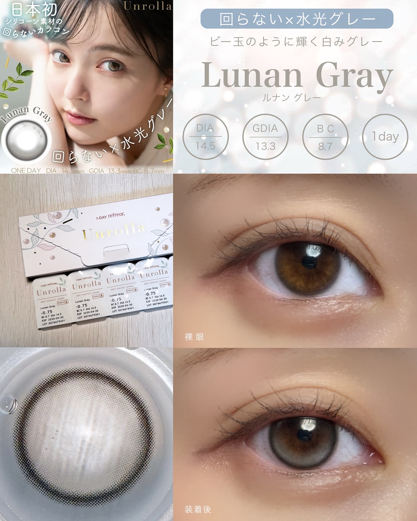 “盛れる”と“透明感”を両立✨回らないハイドロゲル水光カラコンUnrollaのルナンシリーズ、ルナンブラウンとルナングレーをお試し🌕DIA:14.5mmGDIA:13.3mm(ルナングレー)、14.2mm(ルナンブラウン)BC:8.7mm価格...
