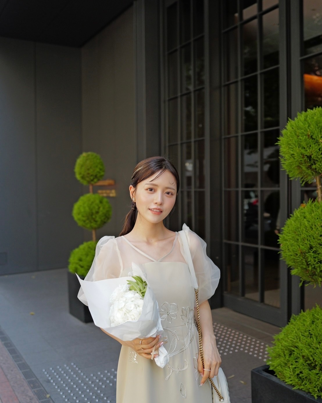 わぁ!白いワンピースに主役級のラメアレンジで主役みたいですね!参列ヘアとありますが、花嫁さんご本人ですか?👰♀️✨