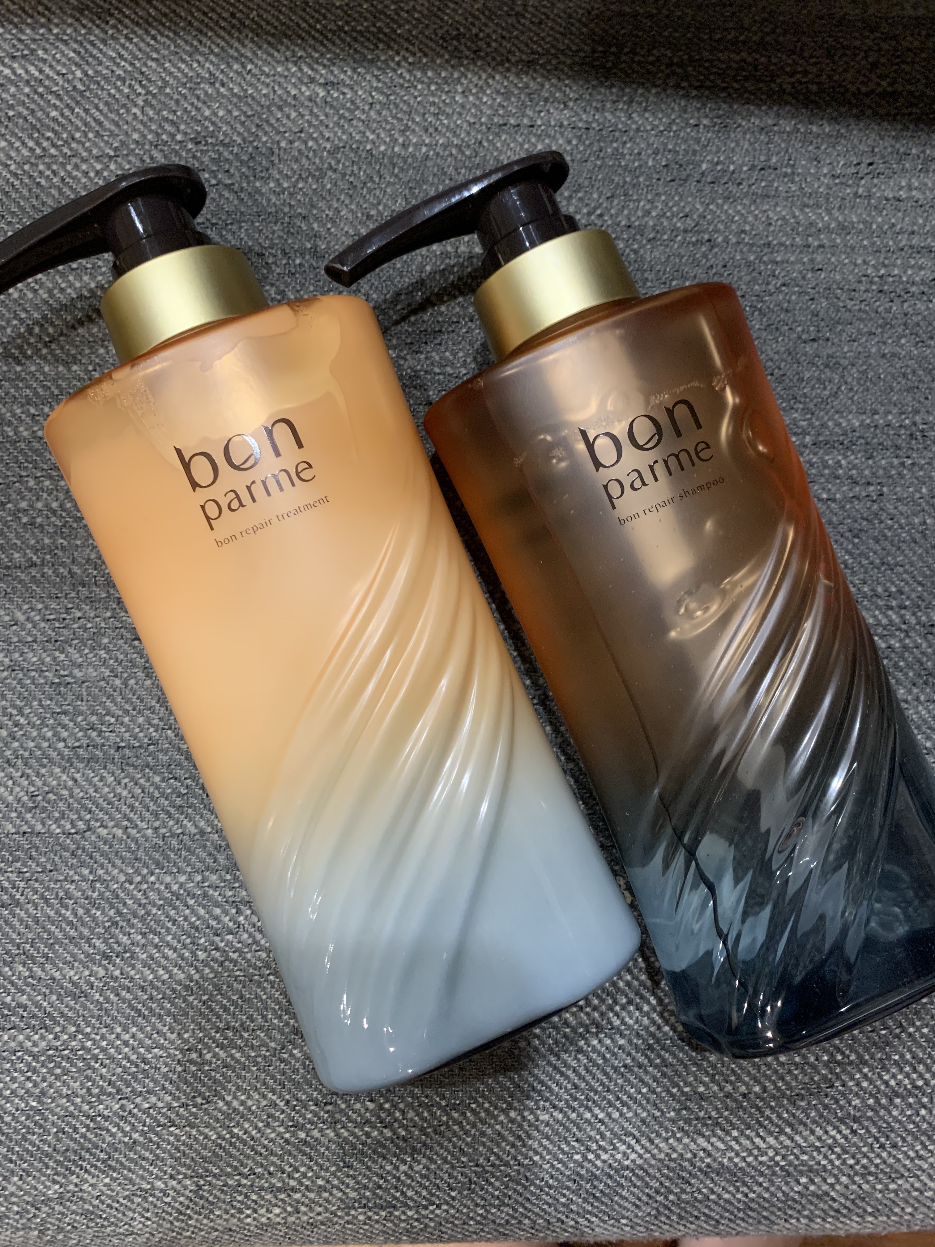\bonparme/空気中の潤いも髪に取り込む新感覚ヘアケア🧡ポンリペアシャンプーボンリペアトリートメントシルクのスカーフを滑らせたような素敵すぎるボトルデザイン✨ボンパルムは古くから続く湯治に着目し、髪のケラチン生成を促すシリカなど頭皮と髪...