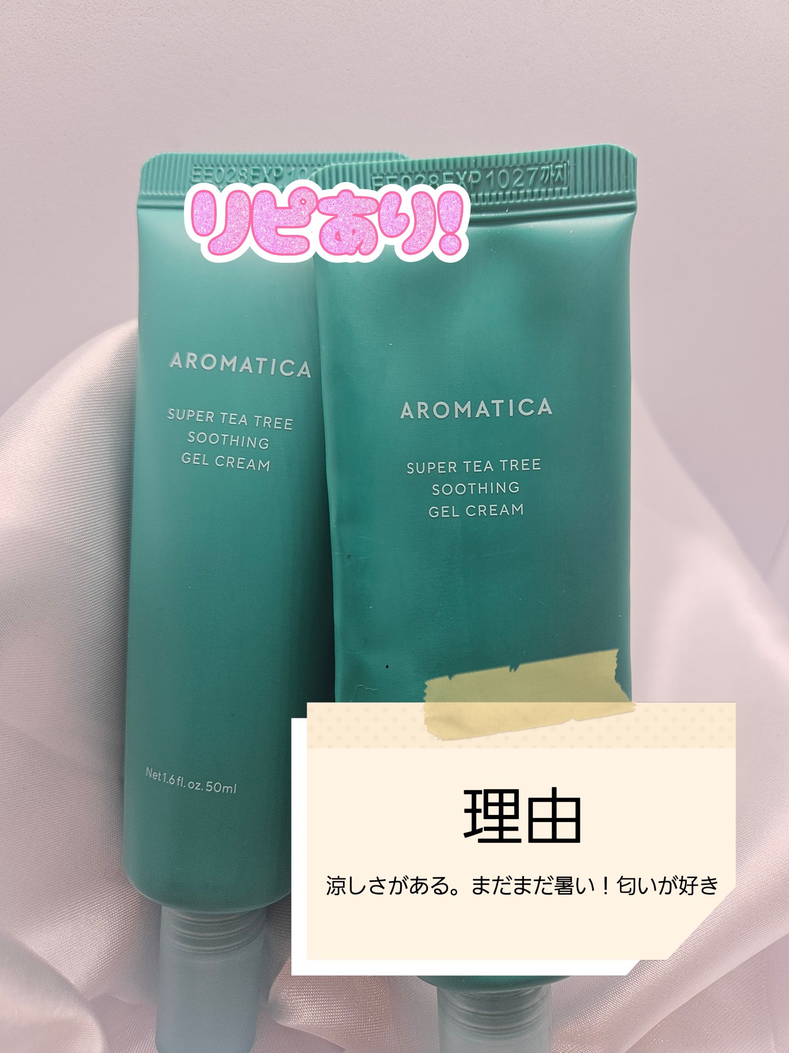 AROMATICAスーパーティーツリースージングジェルクリーム軽いジェルクリームです。さっぱりしていてとても使い心地いいです。今の時期はもうこってりしたクリームではなくこういうのだけ使ってます。オイルを混ぜて保湿力をアップさせることもできます...