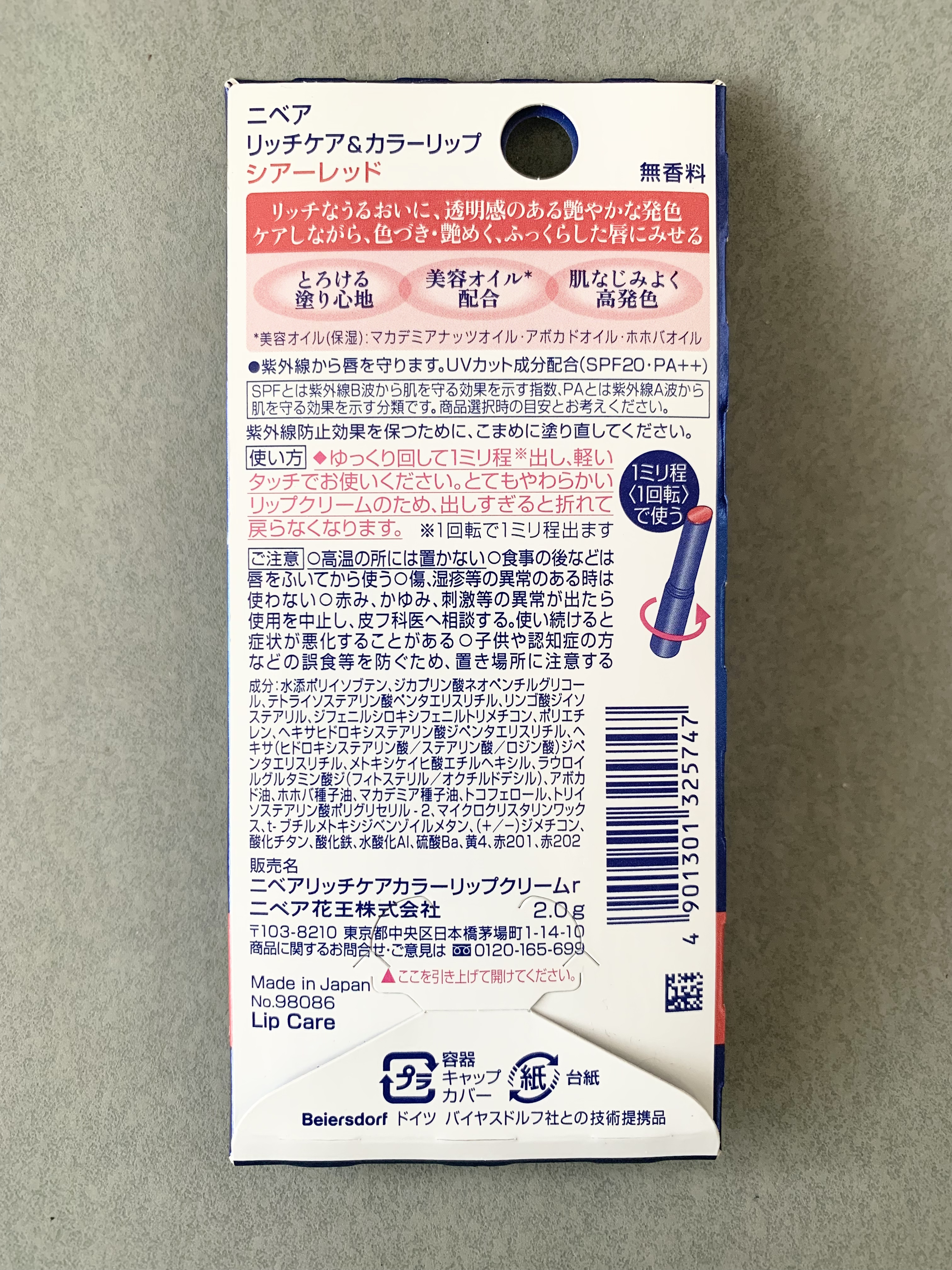 商品詳細情報ニベア ニベア リッチケア&カラーリップ