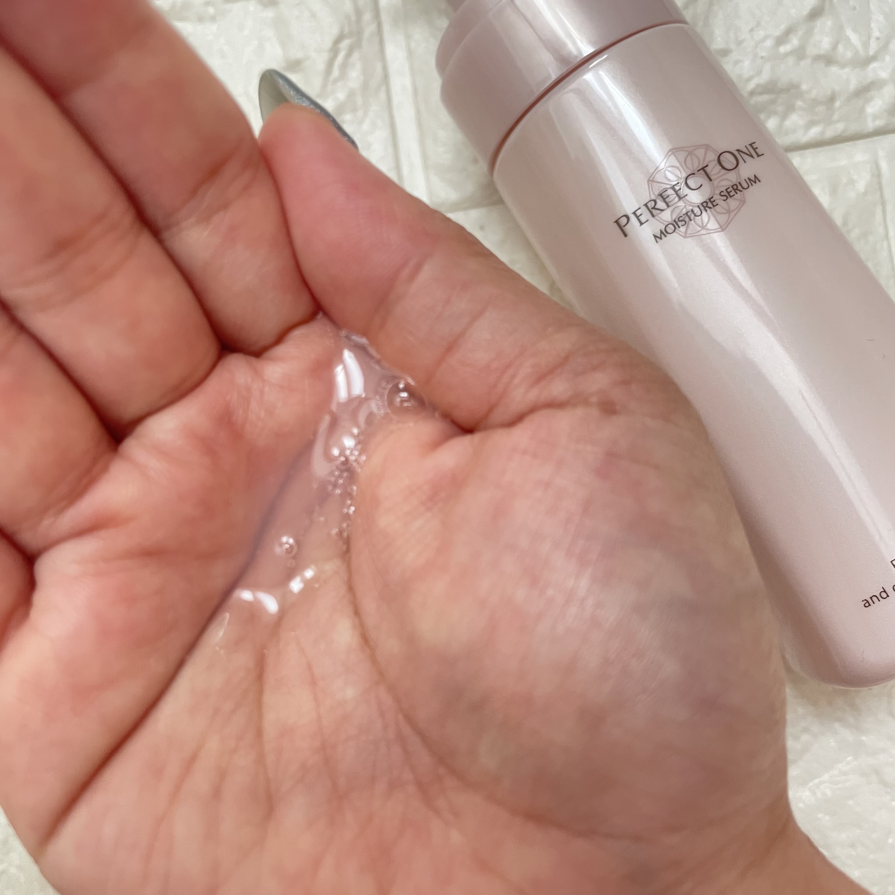 パーフェクトワンモイスチャーセラムサラッとしたテクスチャーでみずみずしい!肌なじみが良くて、ベタつかず不快感なし。プッシュタイプで衛生的。1本で6役なので洗顔後はこれ1つでOK!時短になるのが嬉しいです。リポソームコラーゲンとムラサキ発酵コラ...