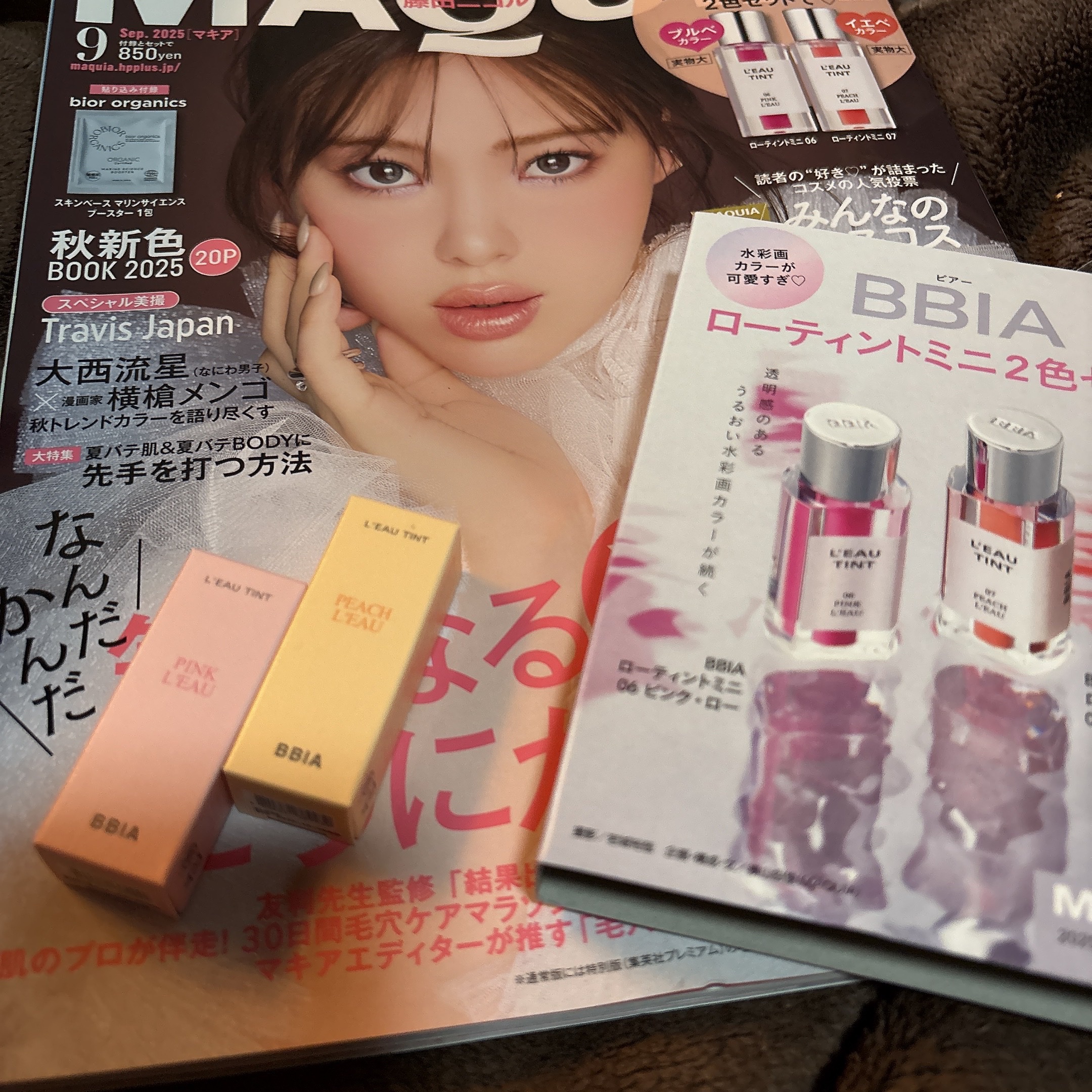 豪華付録に発売前からワクワクしてました💖MAQUIAマキア9月号付録とセットで850yenBBIA(ピアー)さんは日本上陸前のQoo10で購入していた頃から個人的に好感度大のブランドなのでイエベとブルベのミニティント(各税込770yen)が2...