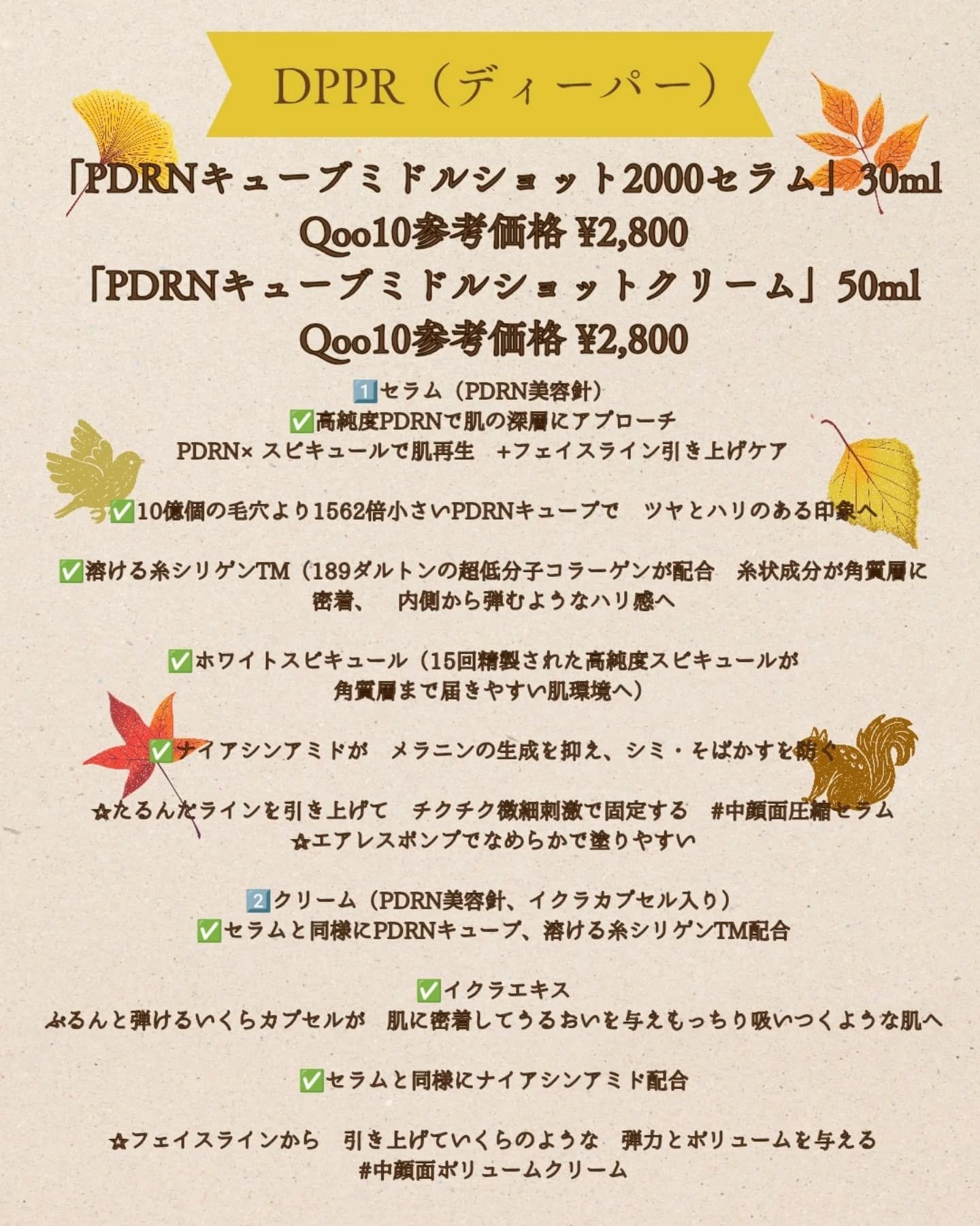 DPPRディーパーのPDRNキューブシリーズだよ❢DPPR(ディーパー)「PDRNキューブミドルショット2000セラム」30mlQoo10参考価格¥2,800「PDRNキューブミドルショットクリーム」50mlQoo10参考価格¥2,800@d...