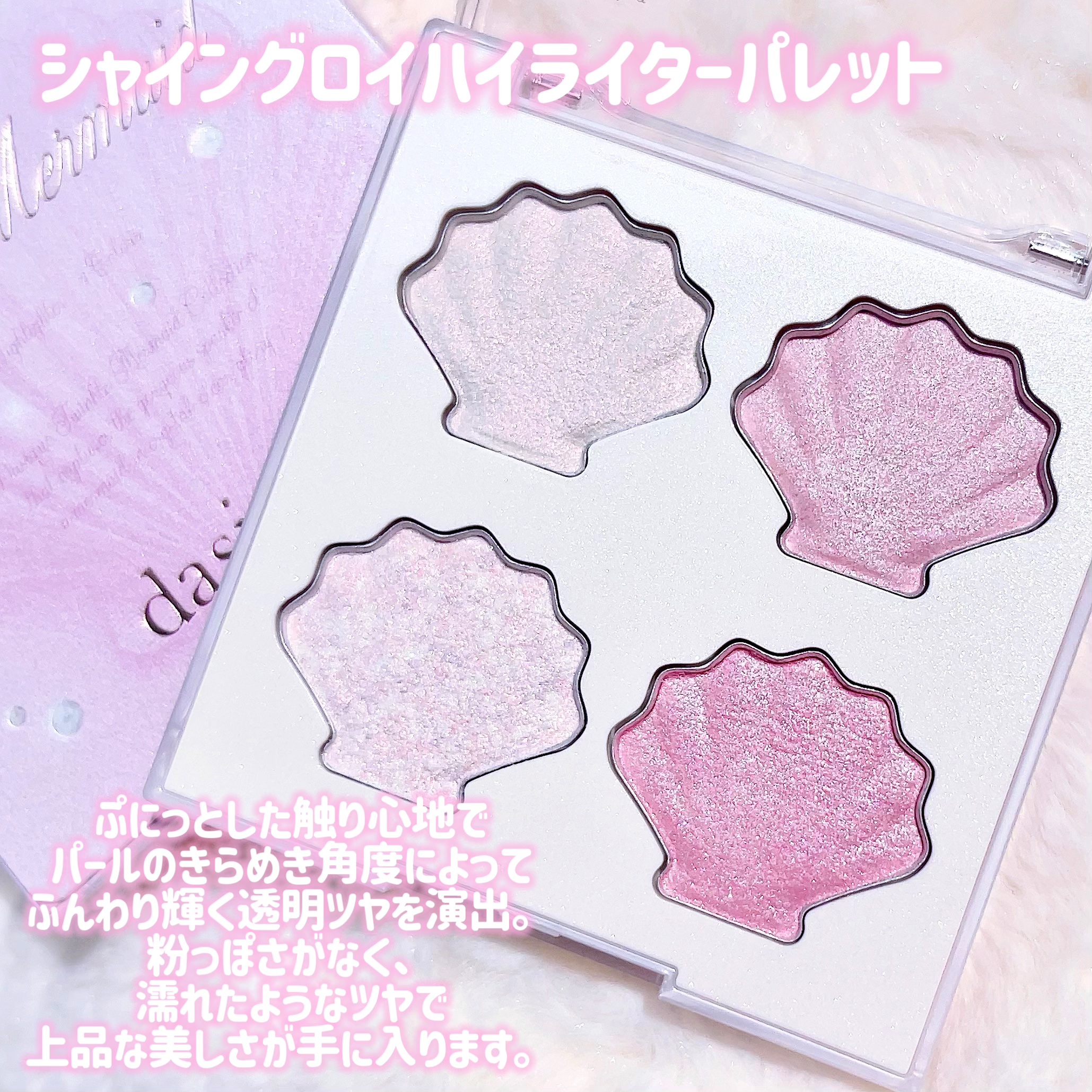 メガ割おすすめ❤️🔥パケ買い不可避😭❕dasiqueハイライターパレット01トゥインクルマーメイドマーメイドラインが可愛いすぎる🥹全部揃えたくなっちゃうビジュでテクスチャは柔らかく使い心地も◎置いているだけでも可愛い🐚デイジークVカットブレ...