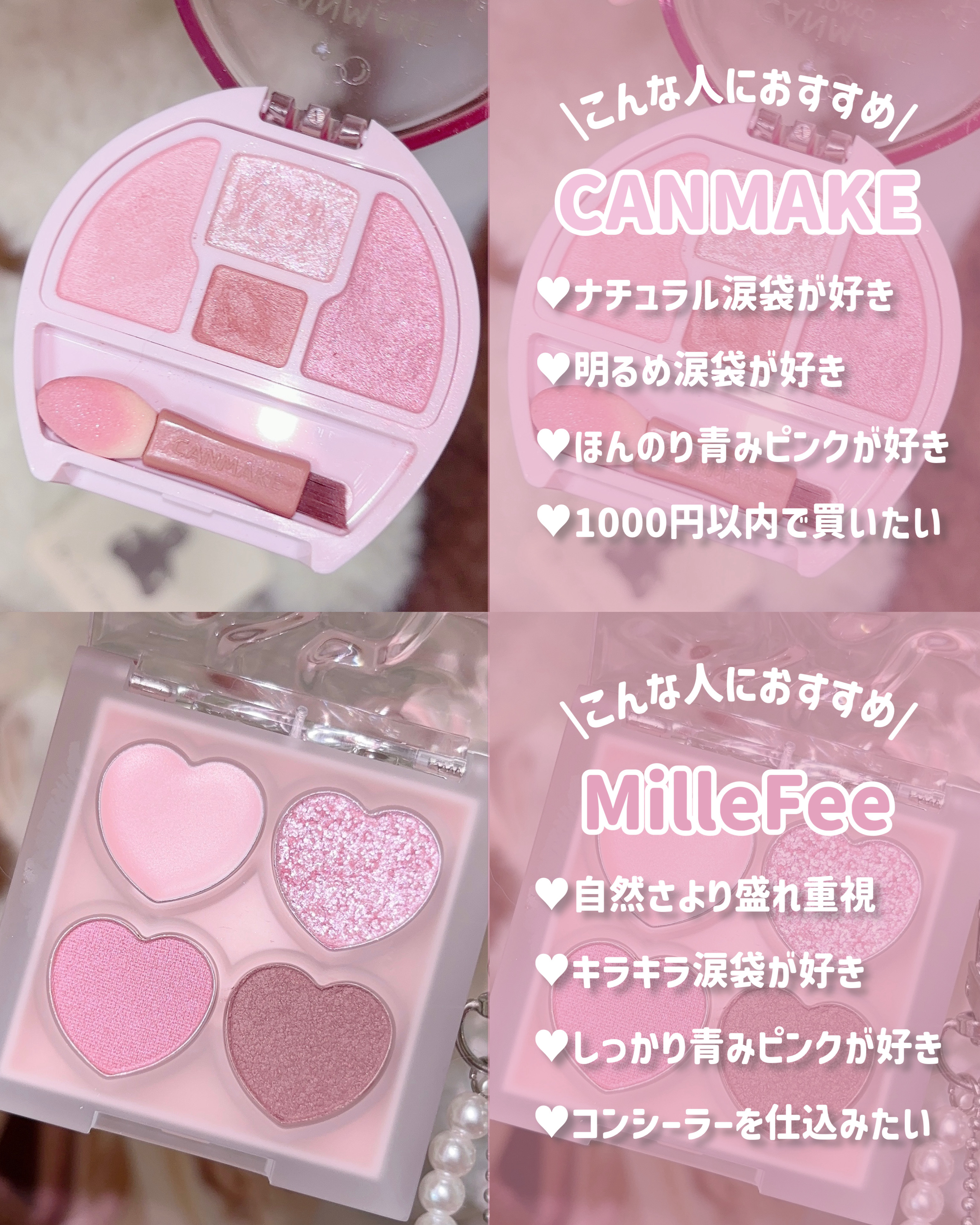 キャンメイクプランぷくコーデアイズ税込792円♡マット・パール・ラメ・血色影の4つのカラーが入っている涙袋専用のアイシャドウパレット♡涙袋用の太チップ・涙袋の影用ブラシ付↑このブラシが使いやすくてお気に入りです✨以前から、02と05を愛用して...
