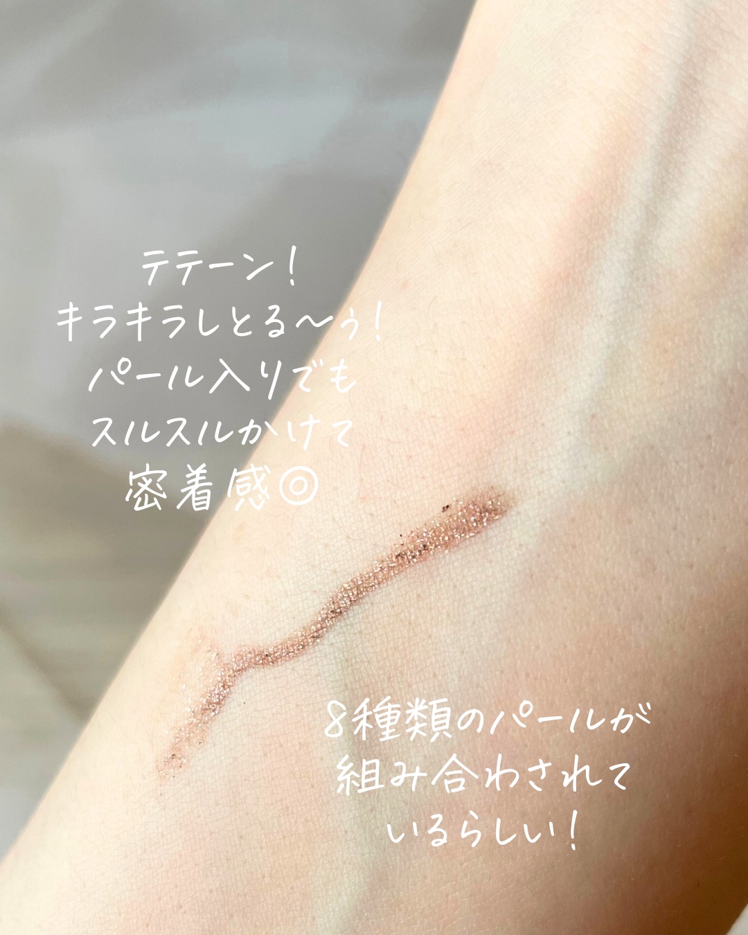 アイグロウジェムって、単色シャドウなのに1個あたりのお値段それなりにするので 躊躇しちゃいそうになりますが… やっぱり、優秀すぎるアイテムで、唯一無二ですよね🥹🥹 これだけでお上品でトレンド感のあるメイクが完成してしまいますもの…🥹 BE387の色味は、温かみのあるベージュをベースに ほんのりピンクみもあり、さらに細かいゴールドラメも入っており、 オンもオフもどっちもいけてしまうとーっても万能で使いやすいカラーです🥰👏 アイグロウジェムはみなさんもご紹介されている通り、 とっても密着してくれるので ☑️長時間よれず、二重線にもたまりにくい ☑️1色で立体感 ☑️カラバリ豊富で揃えたくなる と良いことづくしです🥳 唯一の欠点は、指で塗ったら汚れてしまうことくらいでしょうか??🤣 他の色味もどんどん集めたくなってしまいます😇💓
