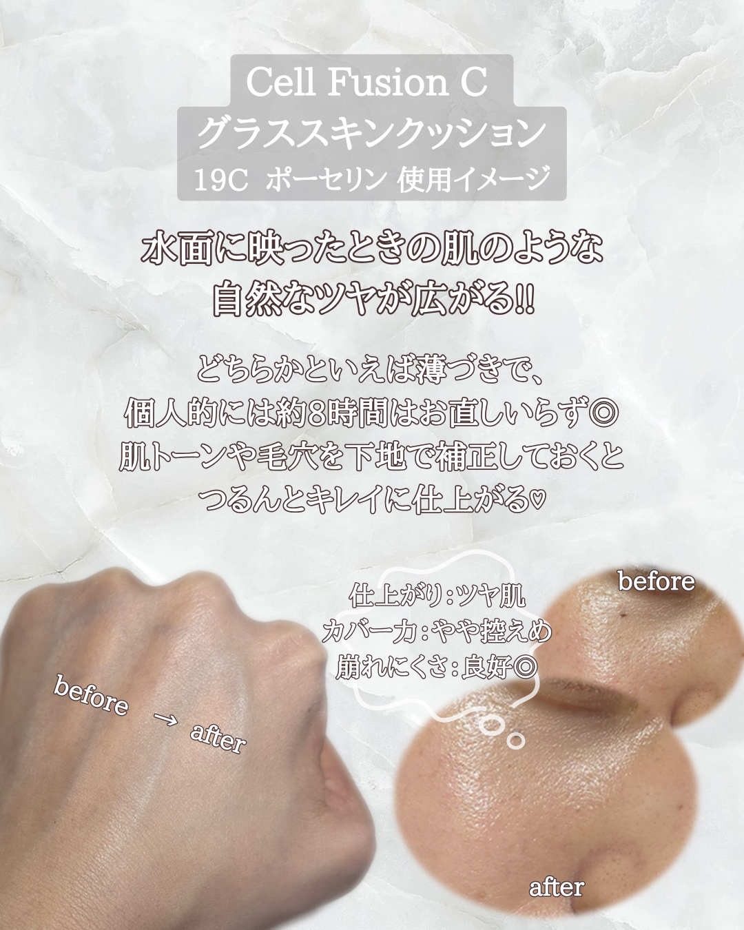 ⚪️CellFusionC⚪️グラススキンクッション【19Cピンクアイボリー】☪️スキンケア成分70%配合重ね塗りしても呼吸できる✨肌のためのクッション🤍パッケージが綺麗💜✨わたしは血色感をプラスしたい明る目なカラーを選びました🎶ピンクアイボ...