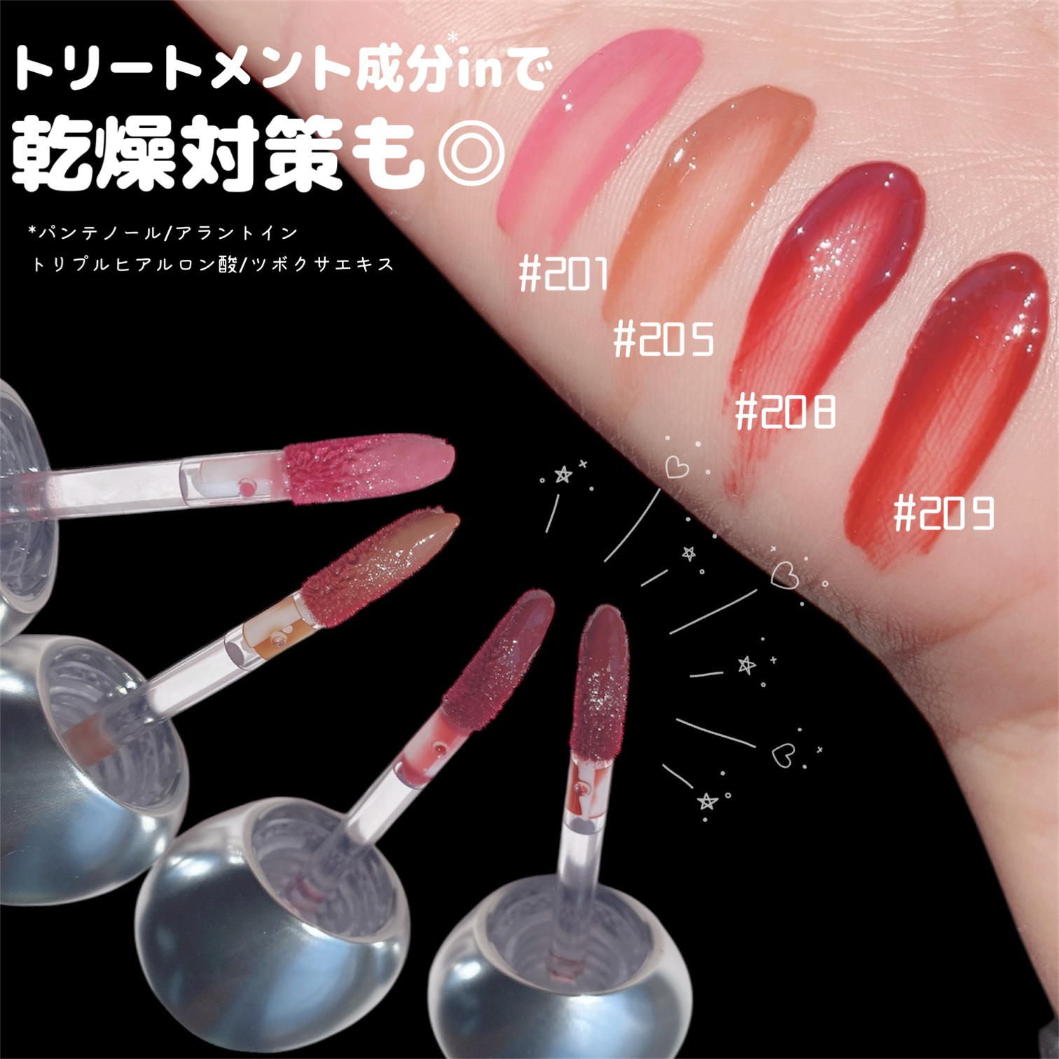 | 中身はゼリーみたいなテクスチャーで ぷるんとしたツヤタイプのティント。 | 詳細を見る | |