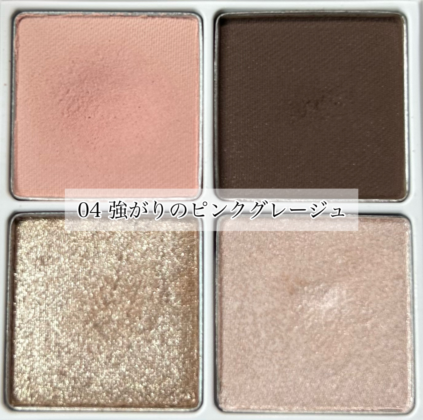 パレットだけ見るとピンクブラウンでピンクグレージュになる気はしない。でも、まぶたに重ねるとちゃんとピンクグレージュ… ラメもキレイだし、多くの方がその魅力にハマるのが分かる✨️ 色味的にも普段使いもしやすいと思います🙆