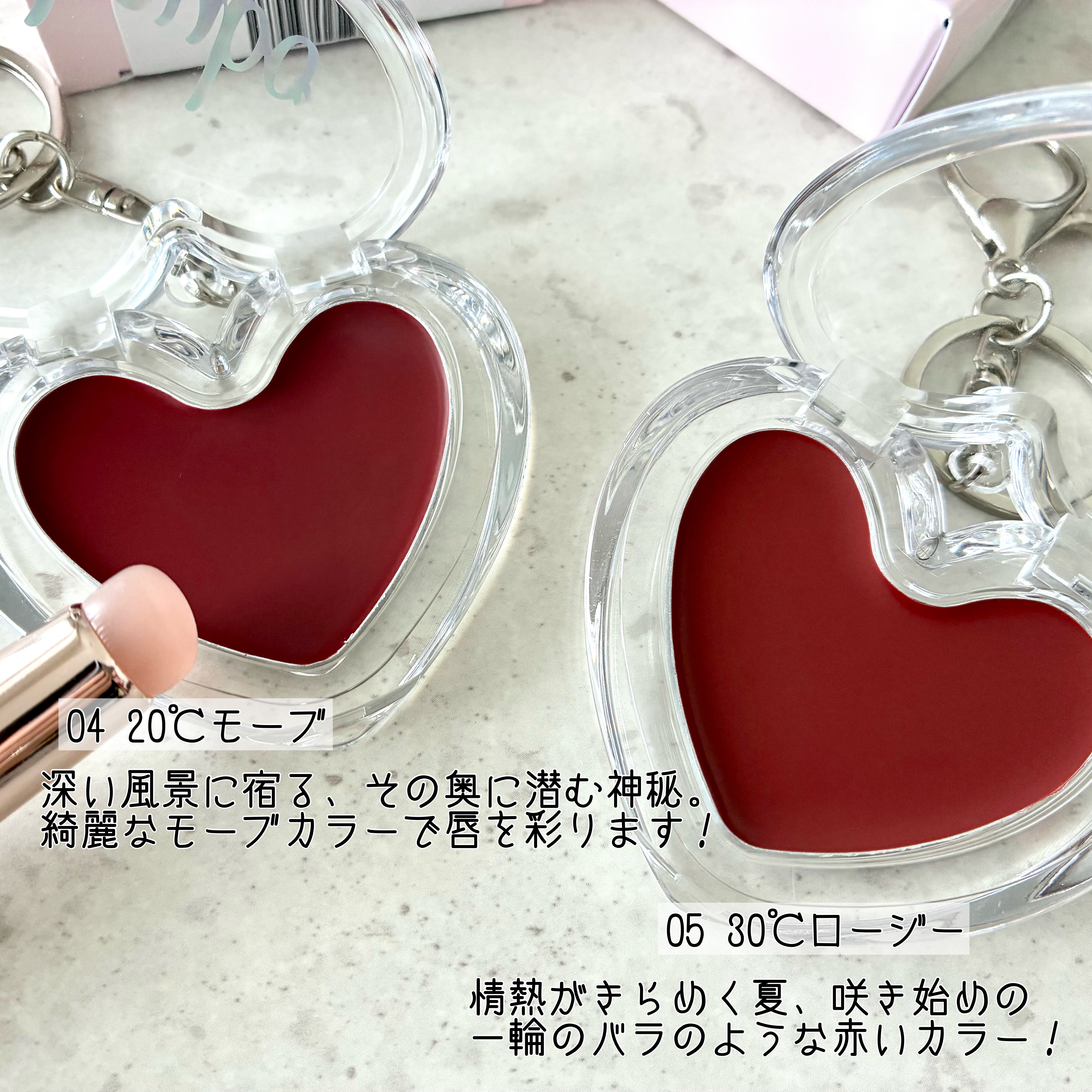 keyboからハートキーリングリップ&チークが登場💗季節の移り変わりを温度で表現したカラーセレクション🎨とろけるメルティングバームが潤いのあるもっちりとした唇を演出してくれます✨キーリング付きでアクセサリーのように持ち運べる便利なコスメです👜...
