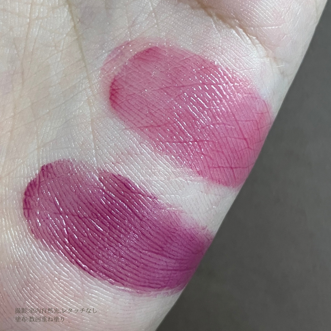 するする塗れて潤うのに高発色、 SPF20 PA++、無香料。 うるみが可愛い反面、 マスクにはつきやすいかも⚠️ 私は単体使いの他に、 同系色のリップ (ティント効果があるものや乾燥しやすいもの) に重ねて保湿を補ったりします🌸 ⚪️カメリアピンク The・青みピンク! うるうる可愛い唇に💕 ⚪️ラズベリーピンク 青みピンクでも大人っぽくお姉さんな色。 発色も良く華やか🙆♀️ ⚪️シアーレッド シアーで強すぎないレッド。 ほどよい血色感がプラスできて、 ヘルシーなメイクが叶う☀️ ⚪️ボルドー 赤みブラウンで使いやすい◎ 秋先にはこれを使いたくなります🍁 公式サイトにはカラーチャートもあり、 バーチャルメイクもできます🤍 カラバリは8色。 お気に入りを見つけやすいかなと思います😉 唇が荒れている時、乾燥気味のときに◎ 常にポーチに入れておきたい。 さっと使える万能リップです💄