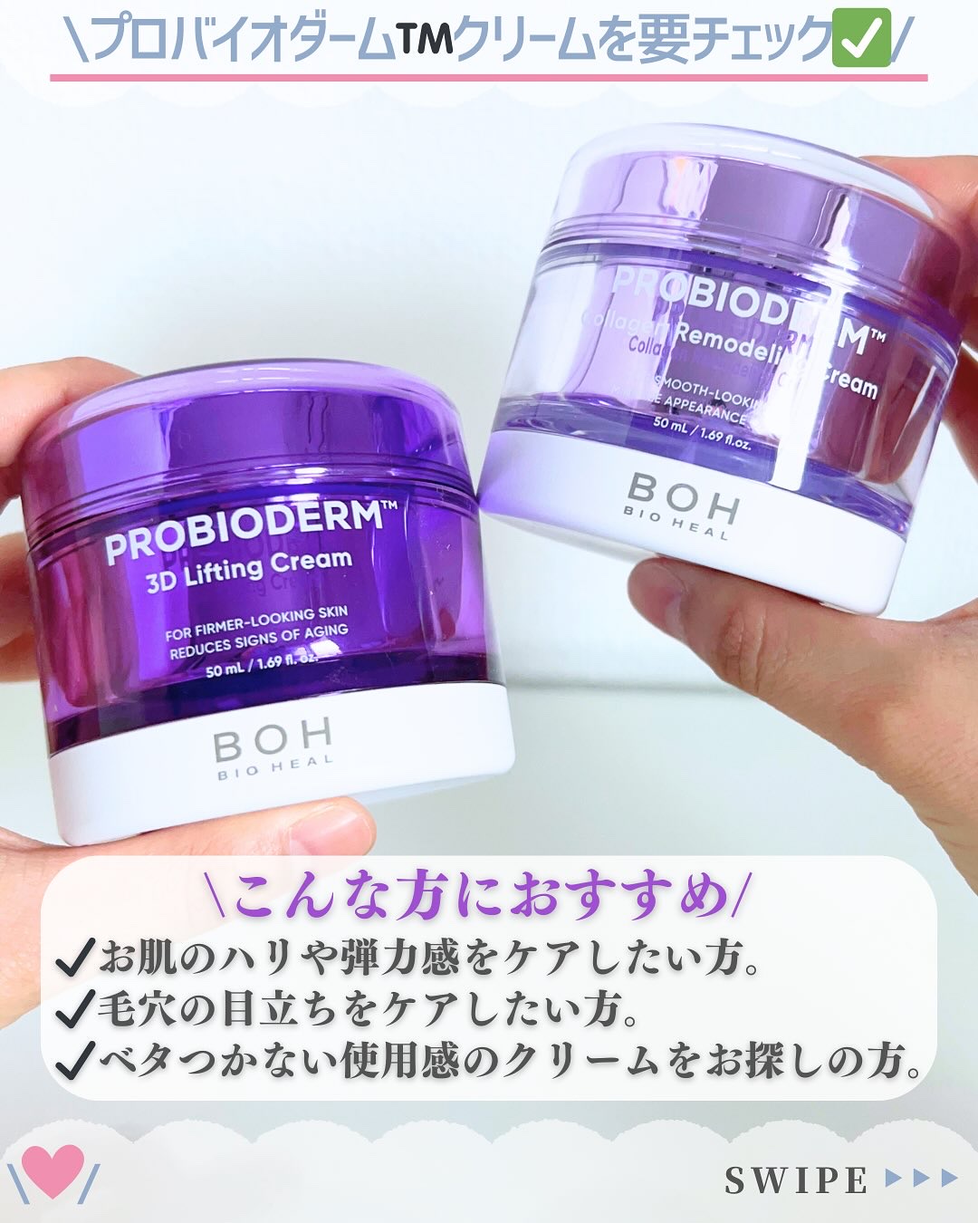 BIOHEALBOH(バイオヒールボ)●プロバイオダーム™3Dリフティングクリーム+●プロバイオダーム™コラーゲンリモデリングクリームプロバイオダーム™3Dリフティングクリームといえば、知ってる人も多いはず!タンタンクリームとよばれ、売れに売...
