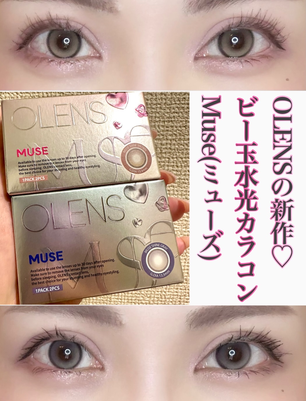 こちらはOLENSさまから提供いただきました🎁🌿🌿🌿☑︎OLENSMUSEシャイングレー/シャインブラウン୨୧୨୧新作のビー玉水光カラコン🫧ビー玉のようにうるうるとしたツヤ感のある目元を演出してくれる明るめのハイライターが入ったデザイン✨目の...