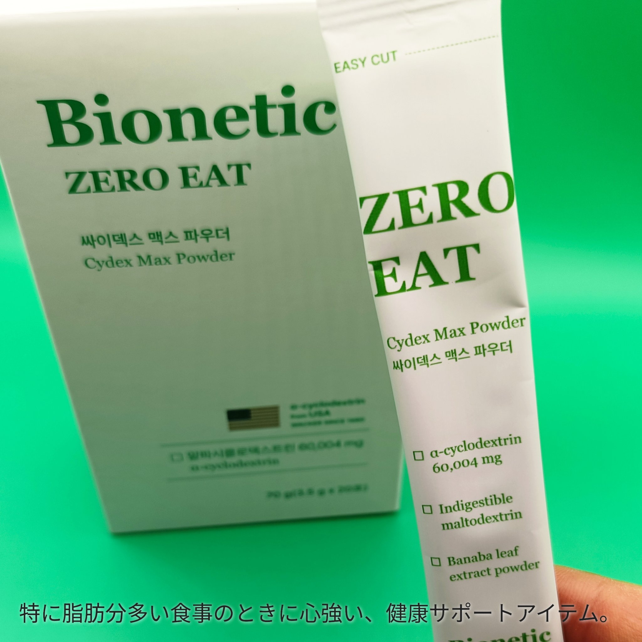 感ゼロに♪/Bionetic(バイオネティック)ゼロイートアルファCDサイデックスマックスパウダー3.5gx20包3,300円アルファシクロデキストリンを主成分とするダイエットサプリを販売する韓国ブランド、Bionetic(バイオネティック)...