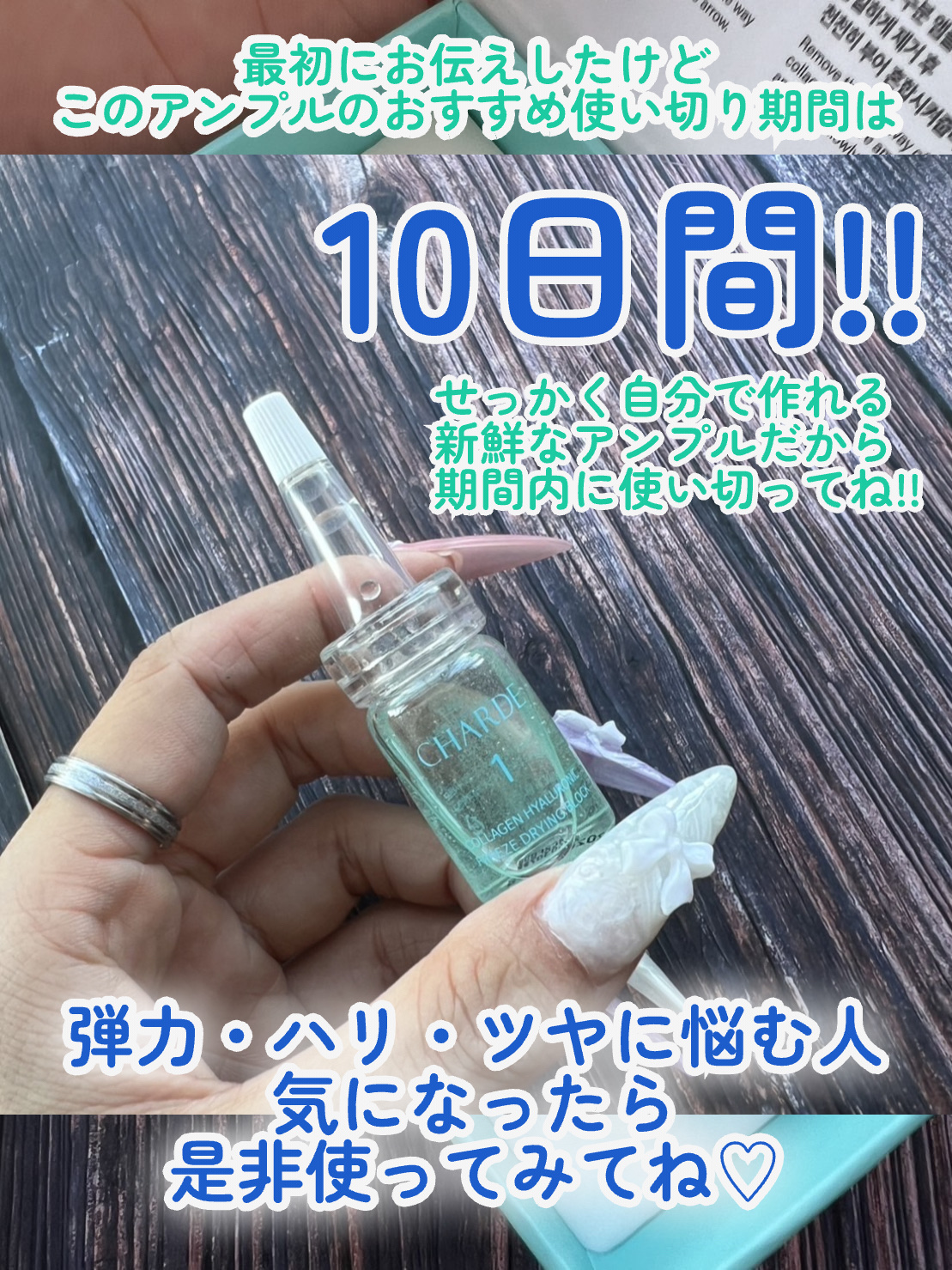 ❀CHARDEクラウドアンプル1weekキット❀❀❀❀❀CHARDEクラウドアンプル1weekキット❀❀❀❀使う前に自分で混ぜる新鮮な美容液💭ヒアルロン酸とコラーゲンがフリーズドライされた1剤に、2剤の水分エッセンスを混ぜてよく振ります!防腐...