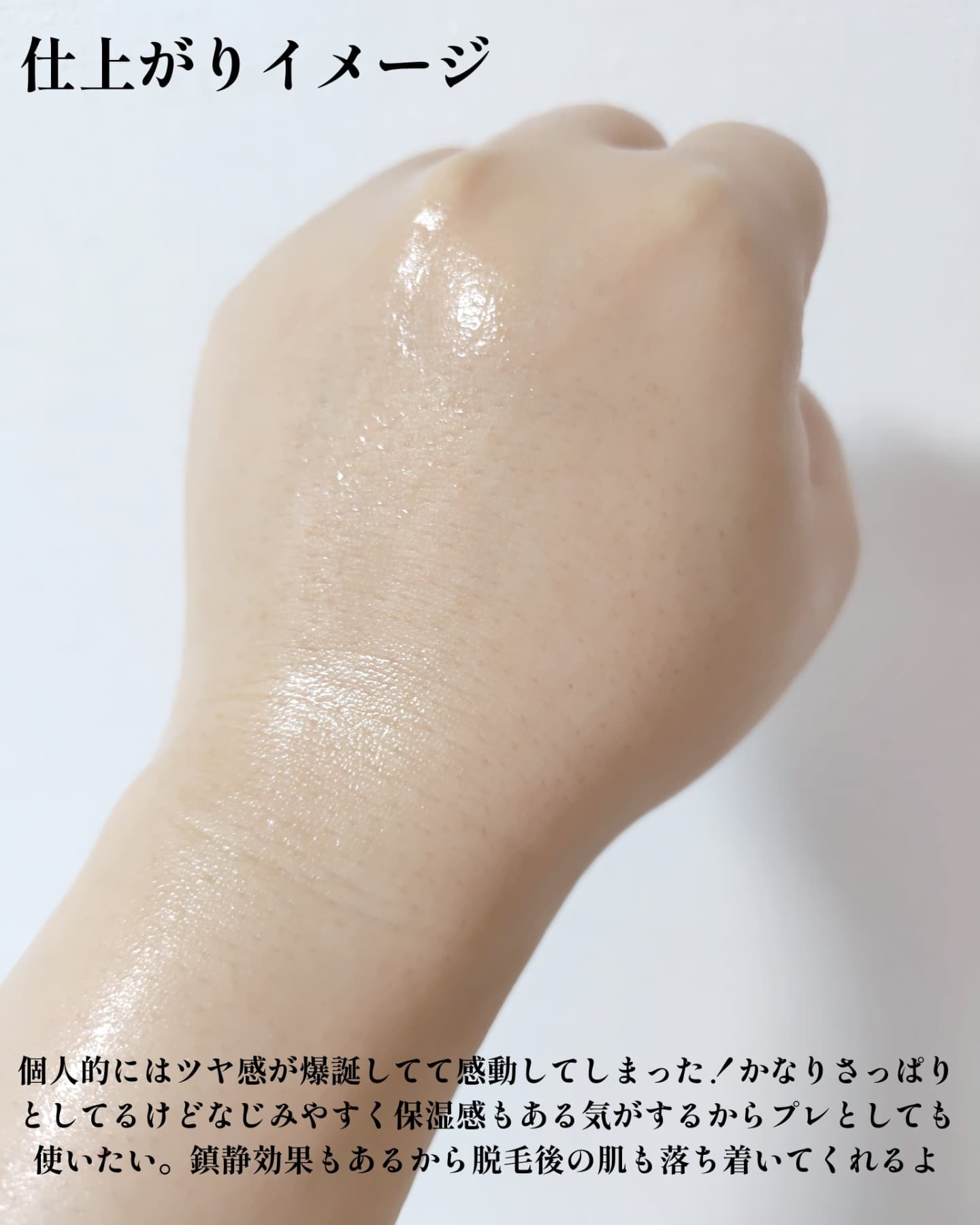 | 使用後の肌はキメが整い サラっとした肌に。軽めの付け心地で保湿が欲しい方にオススメです。 | 詳細を見る |