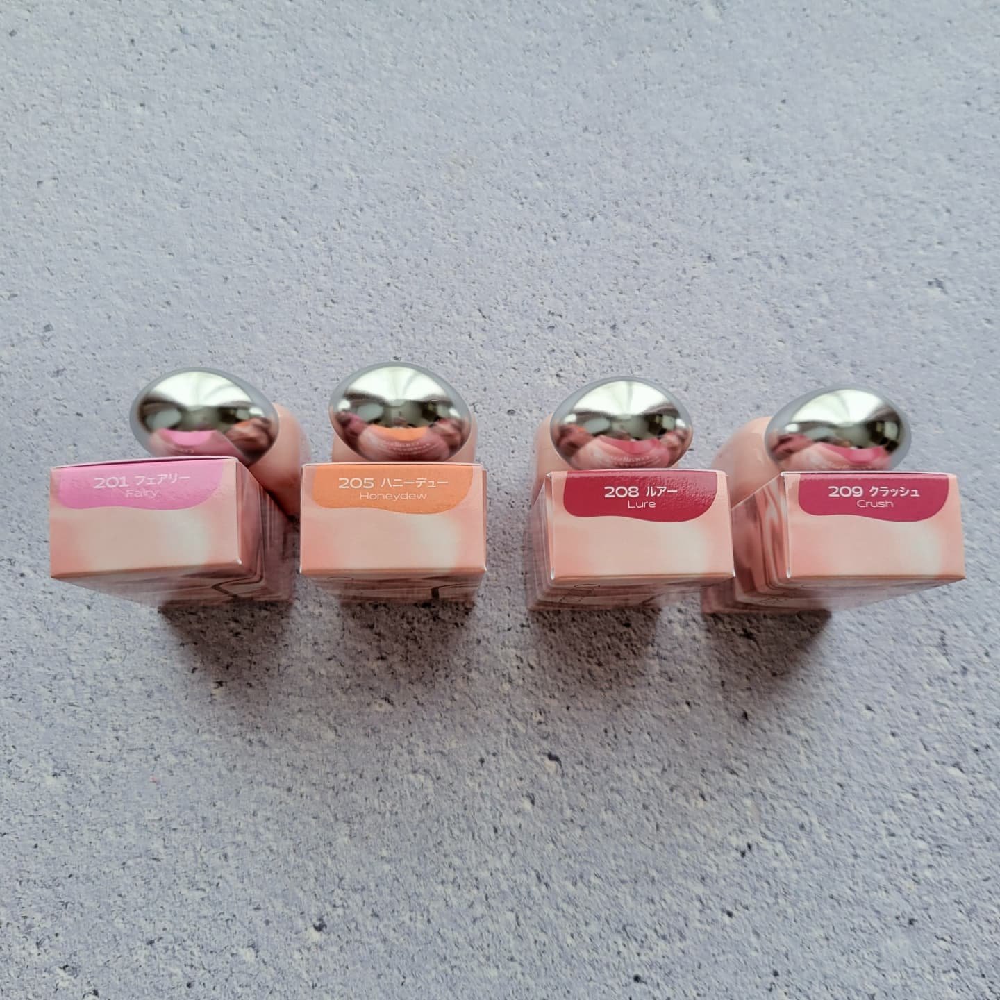 🏷:Coralhazeデュードロップティント全8色展開各¥1650🌷201Fairy🌷205Honeydew🌷208Lure🌷209CrushCoralhazeからガラスのようなうるツヤリップが叶う水滴ティントが新登場👏🏻✨️透け感×高発色...