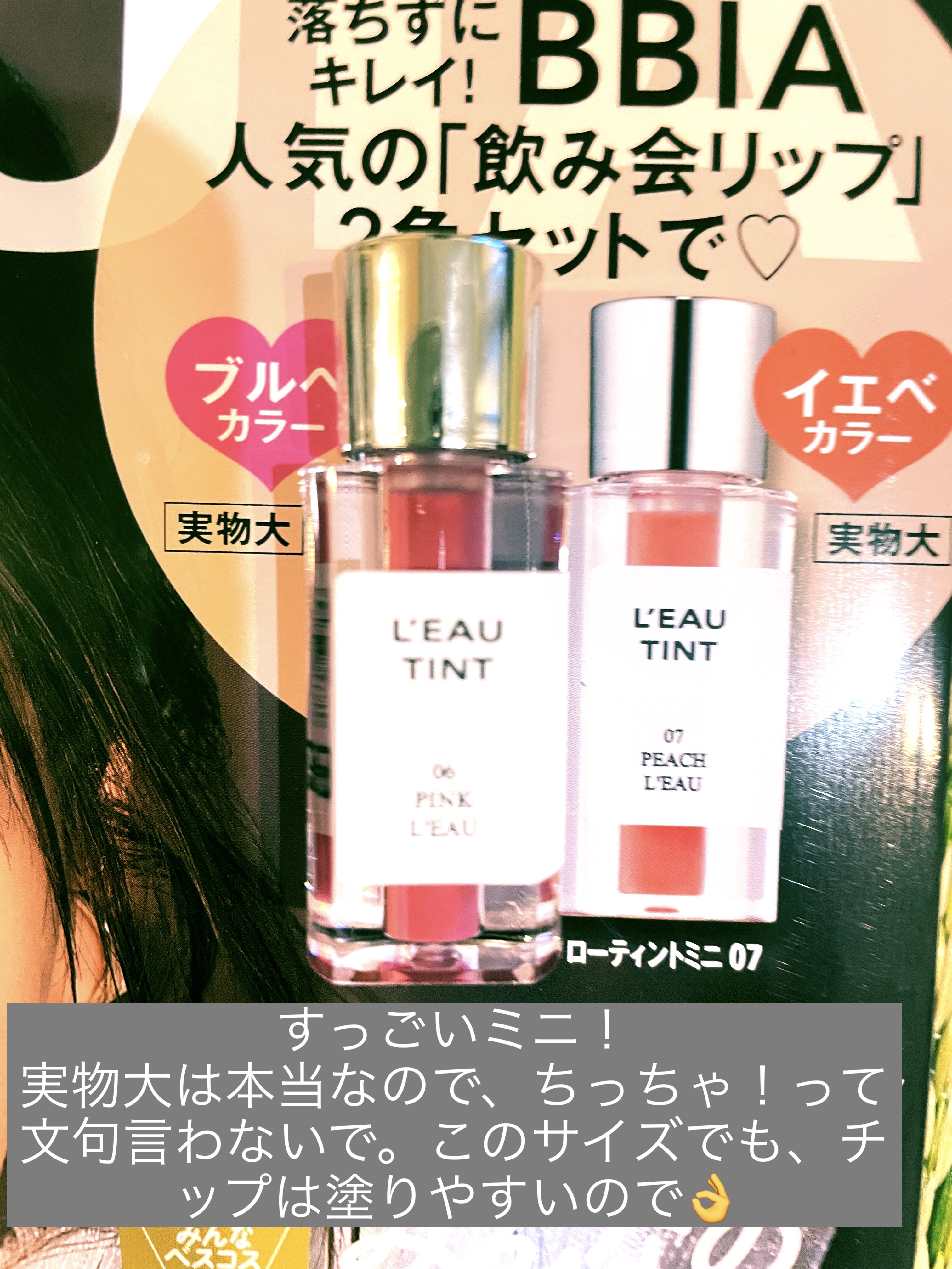 BBIAローティントミニ06ピンク・ロー07ピーチ・ローMAQUIA2025年9月号の付録です。気になっていたBBIAのローティントミニ2色セット予約して購入しました。ミニサイズが可愛くて持ち運びにも便利です。どちらも発色が綺麗でツヤがあり、...