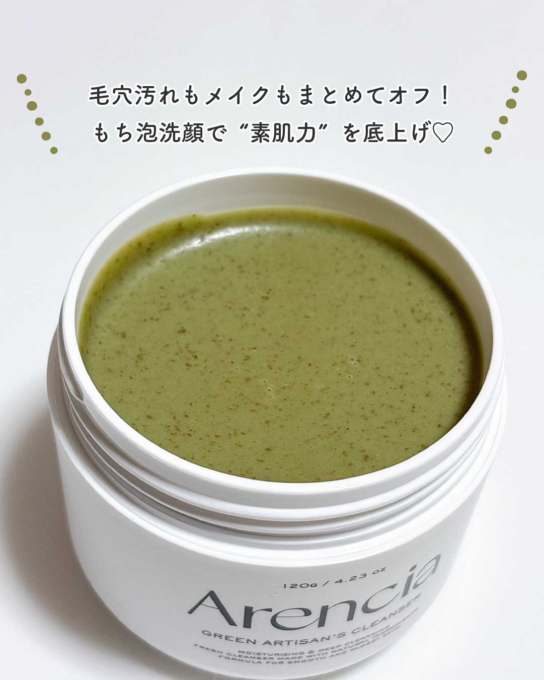 Arenciaアレンシアプレミアムもちソープ「グリーン」🌿話題のもちソープようやくお試しできた♡クレンジングも洗顔もこれひとつで🫧やさしいもち泡💚モチモチしたテクスチャーが特徴的朝はふわもち泡でさっぱり夜はメイクも一緒にすっきりオフ週に数回の...