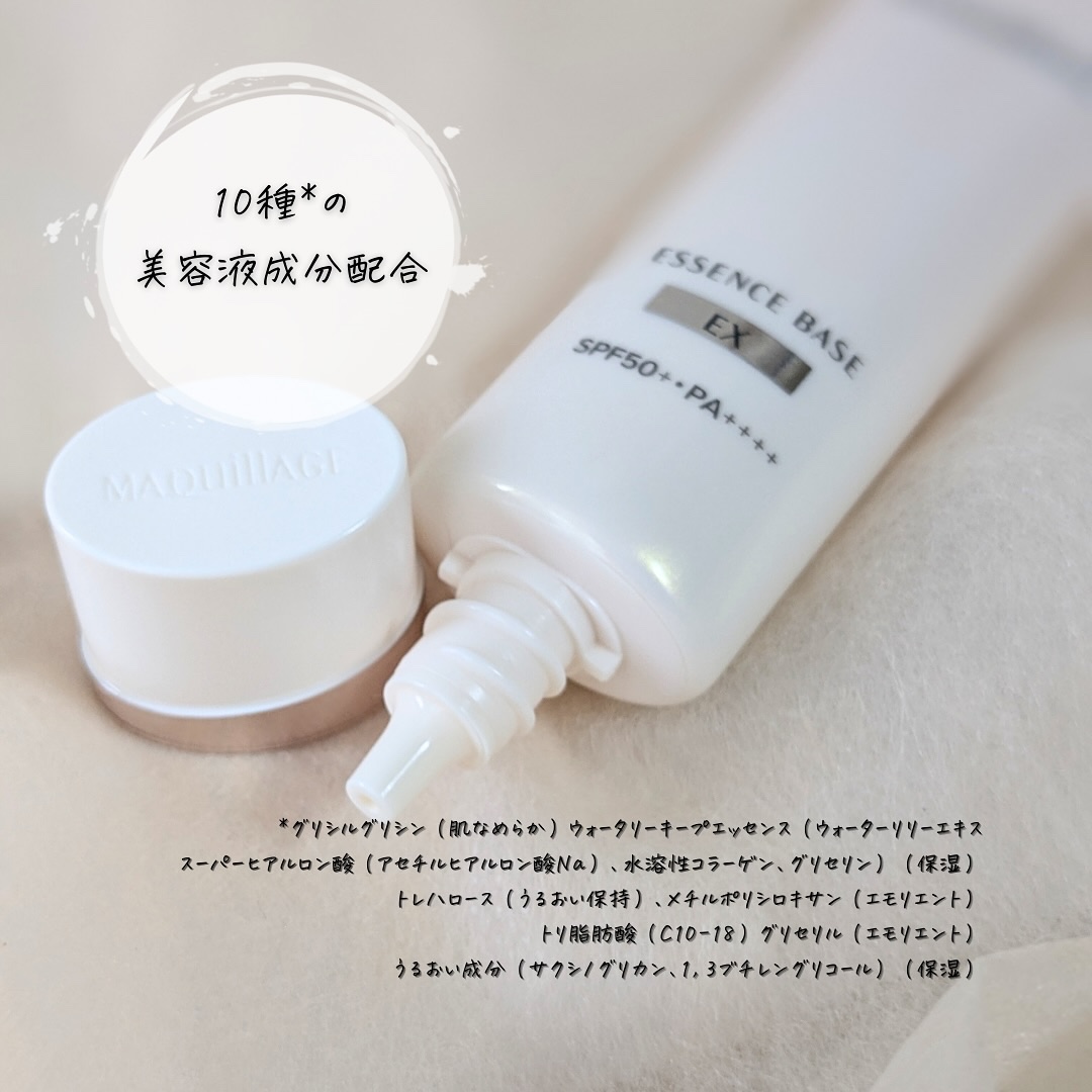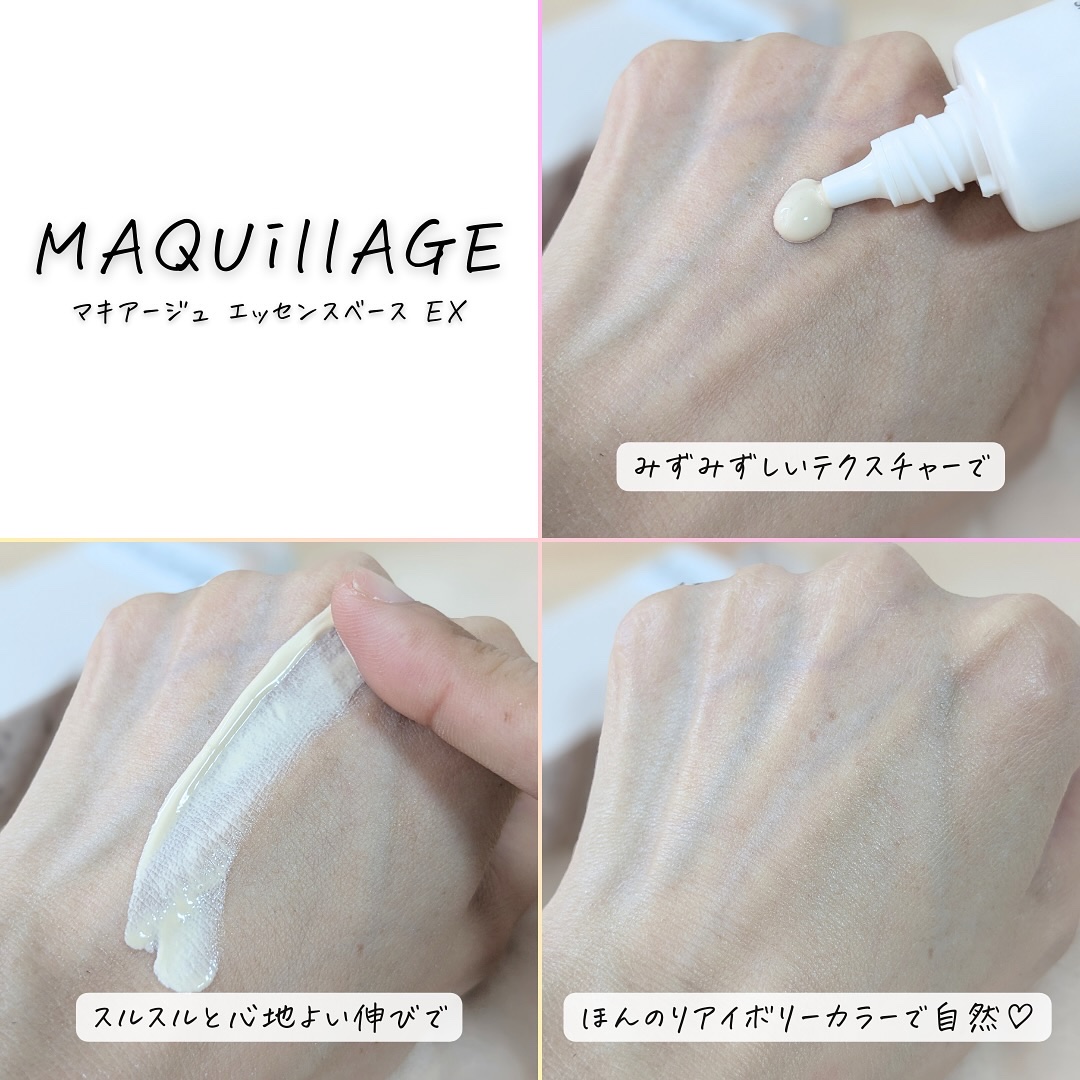 マキアージュさまからいただきました…………………………………………. MAQUillAGE◼︎エッセンスベースEXピュアアイボリー<化粧下地・日中用美容液>………………………………………….美容液で化粧下地成分を包み込み、美容液が肌に届く「セ...