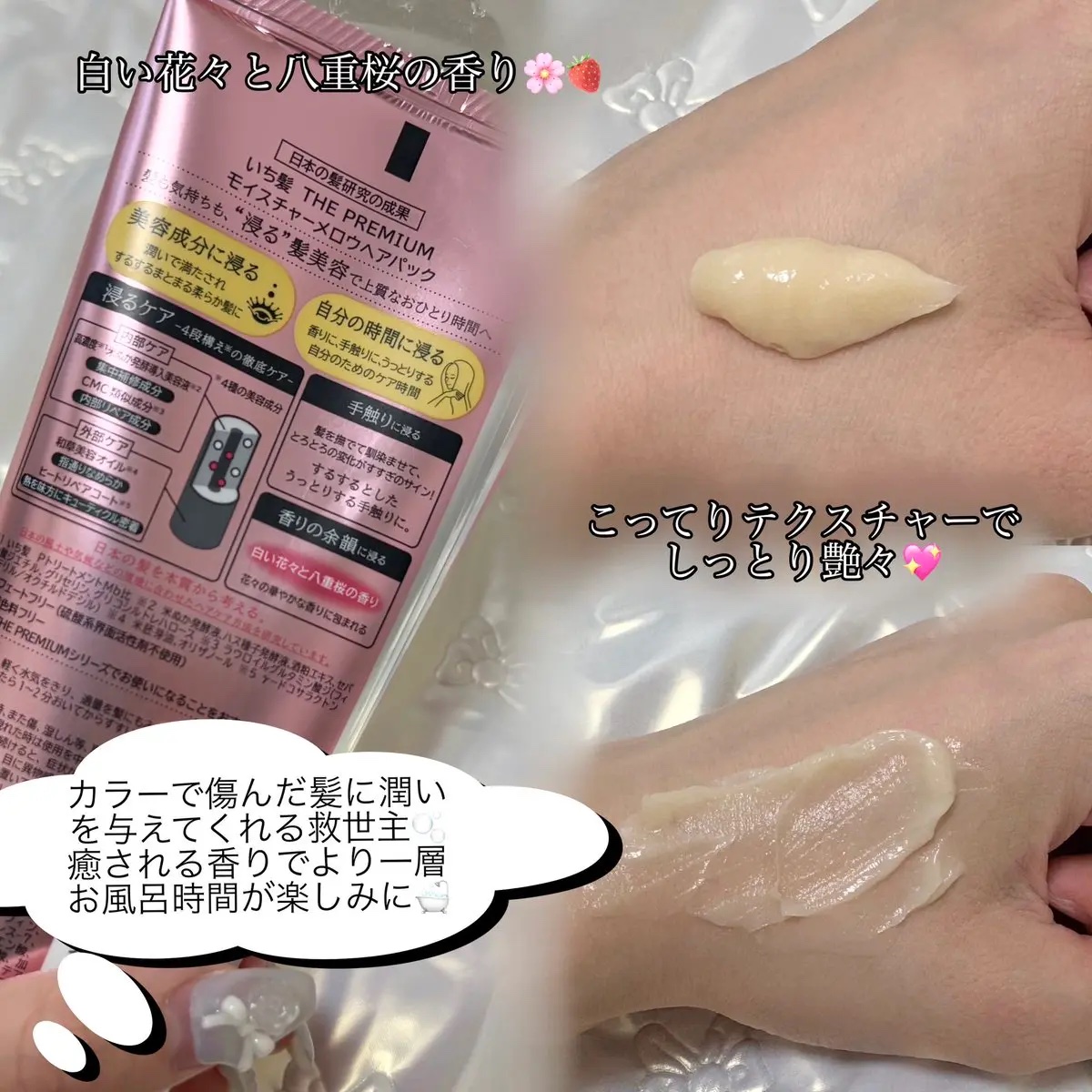 - âãæ¥æ¬ã®é«ªãæ¬è³ªããèãããããã¢ã±ã¢ãã©ã³ã âæ¥æ¬ã®é«ªç ç©¶ã®ææãã¢ã€ãã³çã®ç±ãã¡ãŒãžã«ãã也ç¥é«ªã®ããã®ãã¬ãã¢ã ãã¡ãŒãžã±ã¢ã·ãªãŒãº âé«ªãæ°æã¡ããâæµžãâ髪çŸå®¹ã§äžè³ªãªãã²ãšãæéãžå°ãæ°çºæ³ã®ãã¢ãã㯠â4çš®ã®çŸå®¹æåé åïŒâ浞ãâã±ã¢ïŒ èŽ æ²¢ãªçŸå®¹æåãè©°ã蟌ãã 4段æ§ã*ïŒã®åŸ¹åºã±ã¢ã§ã最ãã§æºãããããããããšãŸãšãŸãæããã髪ãžãšå°ããŸãã ãéäžè£ä¿®æåã髿¿åºŠ*2ç±³ã¬ãçºé µå°å ¥çŸå®¹æ¶²*3ãïŒå éšãªãã¢æåãCMCé¡äŒŒæå*4ãé åã髪å éšã«æµžéããããããã§æºãããŸãã ãæéããªãããæåãåèçŸå®¹ãªã€ã«*5ãé åãæéããªããããªé«ªãžå°ããŸã ããããŒããªãã¢ã³ãŒãæå*6ãé åããã©ã€ã€ãŒã®ç±ã峿¹ã«ãã¥ãŒãã£ã¯ã«ãå¯çãããŸãã âãšãããšé«ªã«éŠŽæããã¯ã¹ãã£ãŒïŒæè§Šãã«â浞ãâïŒ æããã§ãããããšé«ªããªã§ããšããšãã«å€åããããããã®ãµã€ã³ã§ãã ãããããšããæè§Šãã®ããèªåã®é«ªã«ãã£ãšã浞ãæéã«ã âçœãè±ã ãšå «éæ¡ã®éŠãïŒéŠãã®äœé»ã«â浞ãâïŒ è±ã ã®è¯ãããªéŠãã§åªé ãªãã¹ã¿ã€ã ãžå°ããŸãã âãµã«ãã§ãŒãããªãŒïŒç¡«é žç³»ç颿޻æ§å€äžäœ¿çšïŒ âåæçè²æããªãŒ âãã¡é«ª THE PREMIUM ã·ã«ããŒã¹ã ãŒã¹/ã·ã£ã€ããŒã¢ã€ã¹ãã©ã¡ãã«ãã䜿çšããã ããŸãã ã·ã£ã³ããŒåŸãè»œãæ°Žæ°ããããé©éã髪ã«ãã¿ããããã«ãªããŸãããšãããšããæè§Šãã«ãªã£ããïŒïœïŒåãããŠãããããã§ãã ããã â»æ¥æ¬ã®é«ªãæ¬è³ªããèããïŒæ¥æ¬ã®é¢šåãæ°åãªã©ã®ç°å¢ã«åããããã¢ã±ã¢æ¹æ³ãç ç©¶ããŠããŸãã *ïŒïŒ4çš®ã®çŸå®¹æåã *ïŒïŒãã¡é«ª PããªãŒãã¡ã³ãMbæ¯ã *ïŒïŒç±³ã¬ãçºé µæ¶²ããã¹çš®åçºé µæ¶²ãé ç²ãšãã¹ãã»ãã·ã³é žãžãšãã«ãã°ãªã»ãªã³ãã°ãªã³ã·ã«ãã¬ãããŒã¹ *ïŒïŒã©ãŠãã€ã«ã°ã«ã¿ãã³é žãžïŒãã£ãã¹ããªã«/ãªã¯ãã«ããã·ã«ïŒ *ïŒïŒç±³èèœæ²¹ããªãªã¶ããŒã«ã *ïŒïŒÎ³ïŒãã³ãµã©ã¯ãã³