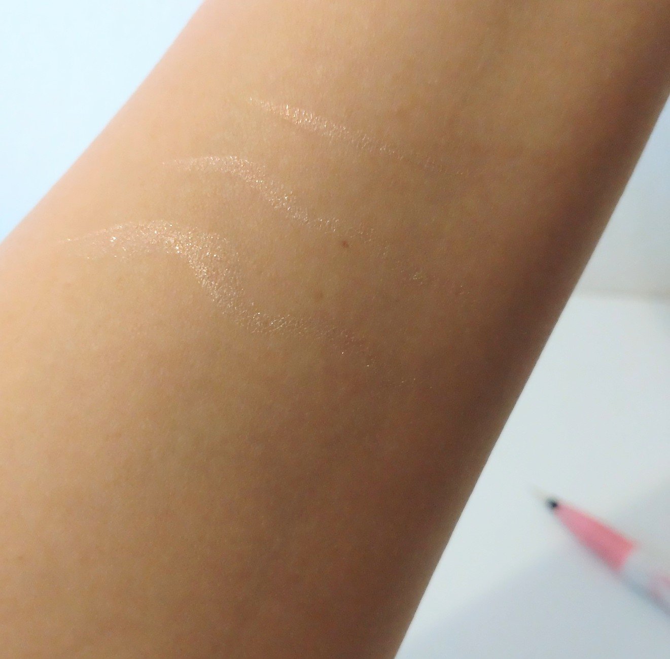 使い方は、2~3mm繰り出して、乾く前に指でなじませるだけ。スルスル~となめらかな描き心地♪ ピタッと密着して、乾くと落ちにくい 004ローズケープは、ゴールドグリッターパールのピンクローズかわいい赤みメイクに♡ そのままでアイラインとしても使ってもいいし、乾く前に広げてアイシャドウとしても◎ とにかくキラキラがかわいいアイテムです♪