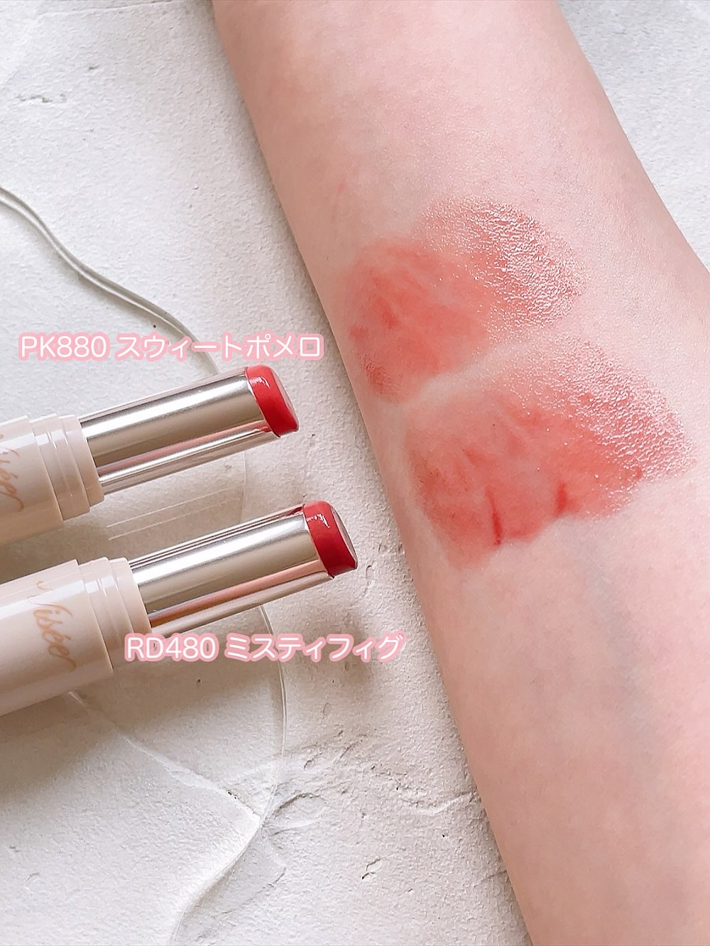 - <BE380 ウーロンベージュ> ダイマージリノール酸ダイマージリノレイルビス(ベヘニル/イソステアリル/フィトステリル)、リンゴ酸ジイソステアリル、ビスジグリセリルポリアシルアジペート-2、デカイソステアリン酸ポリグリセリル-10、トリイソステアリン酸ポリグリセリル-2、ジイソステアリン酸ポリグリセリル-3、ポリブテン、トリメリト酸トリトリデシル、ダイマージリノール酸ジオクチルドデシル、パラフィン、マイクロクリスタリンワックス、トコフェロール、モモ花エキス、BG、(エチレン/プロピレン)コポリマー、(セバシン酸/イソパルミチン酸)ジグリセリル、オクチルドデカノール、カプリル酸グリセリル、ジイソステアリン酸ポリグリセリル-2、ジステアルジモニウムヘクトライト、スクワラン、プロパンジオール、メントール、メントキシプロパンジオール、合成ワックス、水、炭酸プロピレン、香料、酸化チタン、酸化鉄、黄4、赤202 <OR280 スコッチオレンジ> ダイマージリノール酸ダイマージリノレイルビス(ベヘニル/イソステアリル/フィトステリル)、リンゴ酸ジイソステアリル、ビスジグリセリルポリアシルアジペート-2、デカイソステアリン酸ポリグリセリル-10、トリイソステアリン酸ポリグリセリル-2、ジイソステアリン酸ポリグリセリル-3、ポリブテン、トリメリト酸トリトリデシル、ダイマージリノール酸ジオクチルドデシル、パラフィン、マイクロクリスタリンワックス、トコフェロール、モモ花エキス、BG、(エチレン/プロピレン)コポリマー、(セバシン酸/イソパルミチン酸)ジグリセリル、オクチルドデカノール、カプリル酸グリセリル、ジイソステアリン酸ポリグリセリル-2、ジステアルジモニウムヘクトライト、スクワラン、プロパンジオール、メントール、メントキシプロパンジオール、合成ワックス、水、炭酸プロピレン、香料、酸化チタン、酸化鉄、赤202 <PK880 スウィートポメロ> ダイマージリノール酸ダイマージリノレイルビス(ベヘニル/イソステアリル/フィトステリル)、リンゴ酸ジイソステアリル、ビスジグリセリルポリアシルアジペート-2、デカイソステアリン酸ポリグリセリル-10、トリイソステアリン酸ポリグリセリル-2、ジイソステアリン酸ポリグリセリル-3、ポリブテン、トリメリト酸トリトリデシル、ダイマージリノール酸ジオクチルドデシル、パラフィン、マイクロクリスタリンワックス、トコフェロール、モモ花エキス、BG、(エチレン/プロピレン)コポリマー、(セバシン酸/イソパルミチン酸)ジグリセリル、オクチルドデカノール、カプリル酸グリセリル、ジイソステアリン酸ポリグリセリル-2、ジステアルジモニウムヘクトライト、スクワラン、プロパンジオール、メントール、メントキシプロパンジオール、合成ワックス、水、炭酸プロピレン、香料、酸化チタン、酸化鉄、黄4、赤202 <PK881 ミュートピーチ> ダイマージリノール酸ダイマージリノレイルビス(ベヘニル/イソステアリル/フィトステリル)、リンゴ酸ジイソステアリル、ビスジグリセリルポリアシルアジペート-2、デカイソステアリン酸ポリグリセリル-10、トリイソステアリン酸ポリグリセリル-2、ジイソステアリン酸ポリグリセリル-3、ポリブテン、トリメリト酸トリトリデシル、ダイマージリノール酸ジオクチルドデシル、パラフィン、マイクロクリスタリンワックス、トコフェロール、モモ花エキス、BG、(エチレン/プロピレン)コポリマー、(セバシン酸/イソパルミチン酸)ジグリセリル、オクチルドデカノール、カプリル酸グリセリル、ジイソステアリン酸ポリグリセリル-2、ジステアルジモニウムヘクトライト、スクワラン、プロパンジオール、メントール、メントキシプロパンジオール、合成ワックス、水、炭酸プロピレン、香料、酸化チタン、酸化鉄、黄4、赤202 <RD480 ミスティフィグ> ダイマージリノール酸ダイマージリノレイルビス(ベヘニル/イソステアリル/フィトステリル)、リンゴ酸ジイソステアリル、ビスジグリセリルポリアシルアジペート-2、デカイソステアリン酸ポリグリセリル-10、トリイソステアリン酸ポリグリセリル-2、ジイソステアリン酸ポリグリセリル-3、ポリブテン、トリメリト酸トリトリデシル、ダイマージリノール酸ジオクチルドデシル、パラフィン、マイクロクリスタリンワックス、トコフェロール、モモ花エキス、BG、(エチレン/プロピレン)コポリマー、(セバシン酸/イソパルミチン酸)ジグリセリル、オクチルドデカノール、カプリル酸グリセリル、ジイソステアリン酸ポリグリセリル-2、ジステアルジモニウムヘクトライト、スクワラン、プロパンジオール、メントール、メントキシプロパンジオール、合成ワックス、水、炭酸プロピレン、香料、酸化チタン、酸化鉄、赤202 <RO680 ダスティプラム> ダイマージリノール酸ダイマージリノレイルビス(ベヘニル/イソステアリル/フィトステリル)、リンゴ酸ジイソステアリル、ビスジグリセリルポリアシルアジペート-2、デカイソステアリン