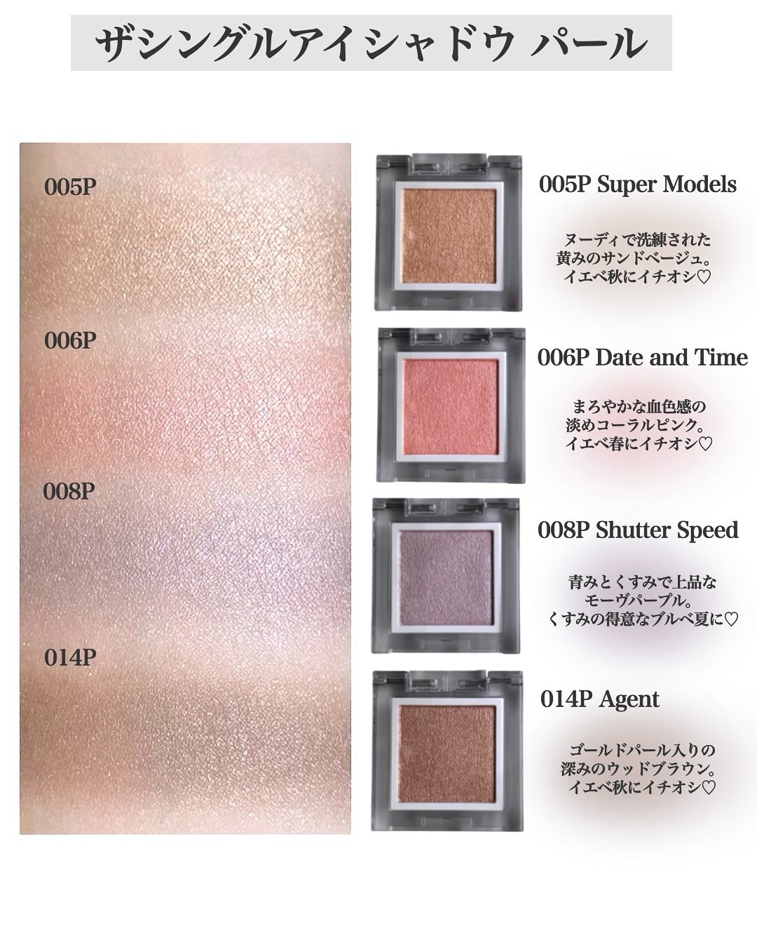 | 単色アイシャドウランキング第104位 | 肌にのせるとパールがツヤツヤで綺麗なのが、いつまでも見ていたくなるのです💫 | 詳細を見る | |