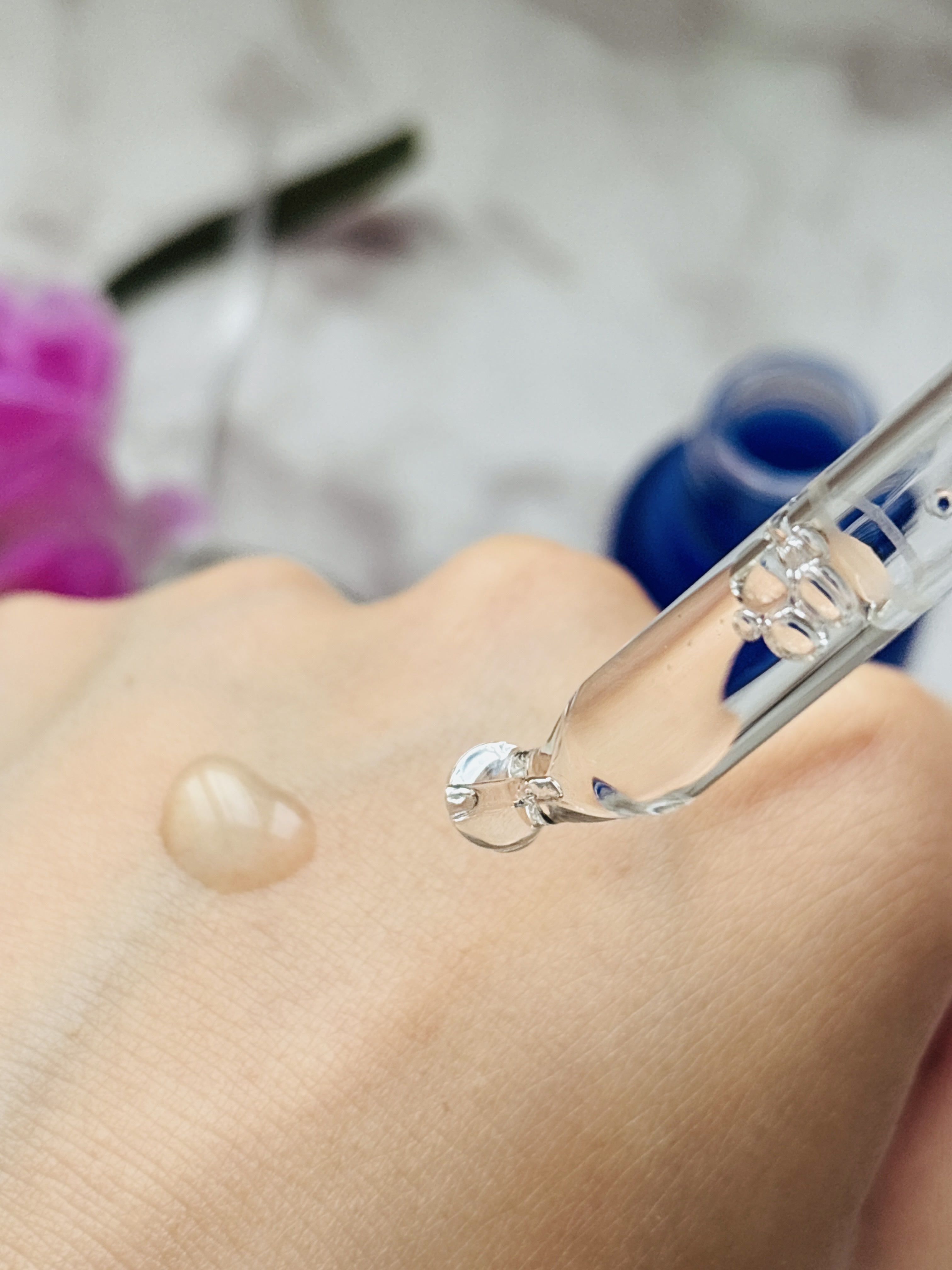 美容液と言うよりは乳液か、クリーム寄りのテクスチャーです。1プッシュ出してみてもこっくりした感じ。手に取って肌になじませてみたところとっても伸びがよいです。べたつくことがなくさらっとしていました!化粧水の後にこの美容液、となっていましたがク...