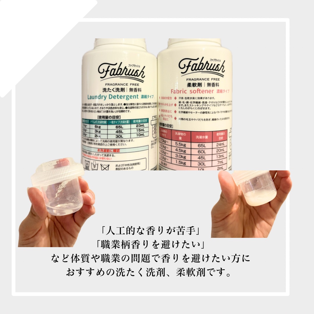 香らない!新しい洗たく洗剤&柔軟剤fabrush香料・蛍光増白剤・漂白剤・着色料無添加。お肌にも環境にもうれしい無香料洗たく洗剤、柔軟剤が登場ポップなパケが印象的。清潔感のある見た目。赤ちゃんが居るご家族でも一緒に使えるよ。✔️洗たく洗剤(5...