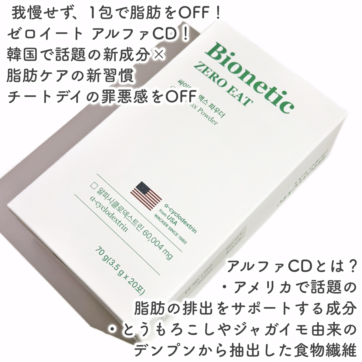 \我慢せず、1包で脂肪をoff‼️/@bionetic_official_jpのゼロイートをお試ししました✨*たくさん食べた日も、ダイエット中のチートデイもこれを飲んで罪悪感もなしに…🩷*無味無臭のパウダーで、そのまま摂取するか水や飲料に混ぜ...