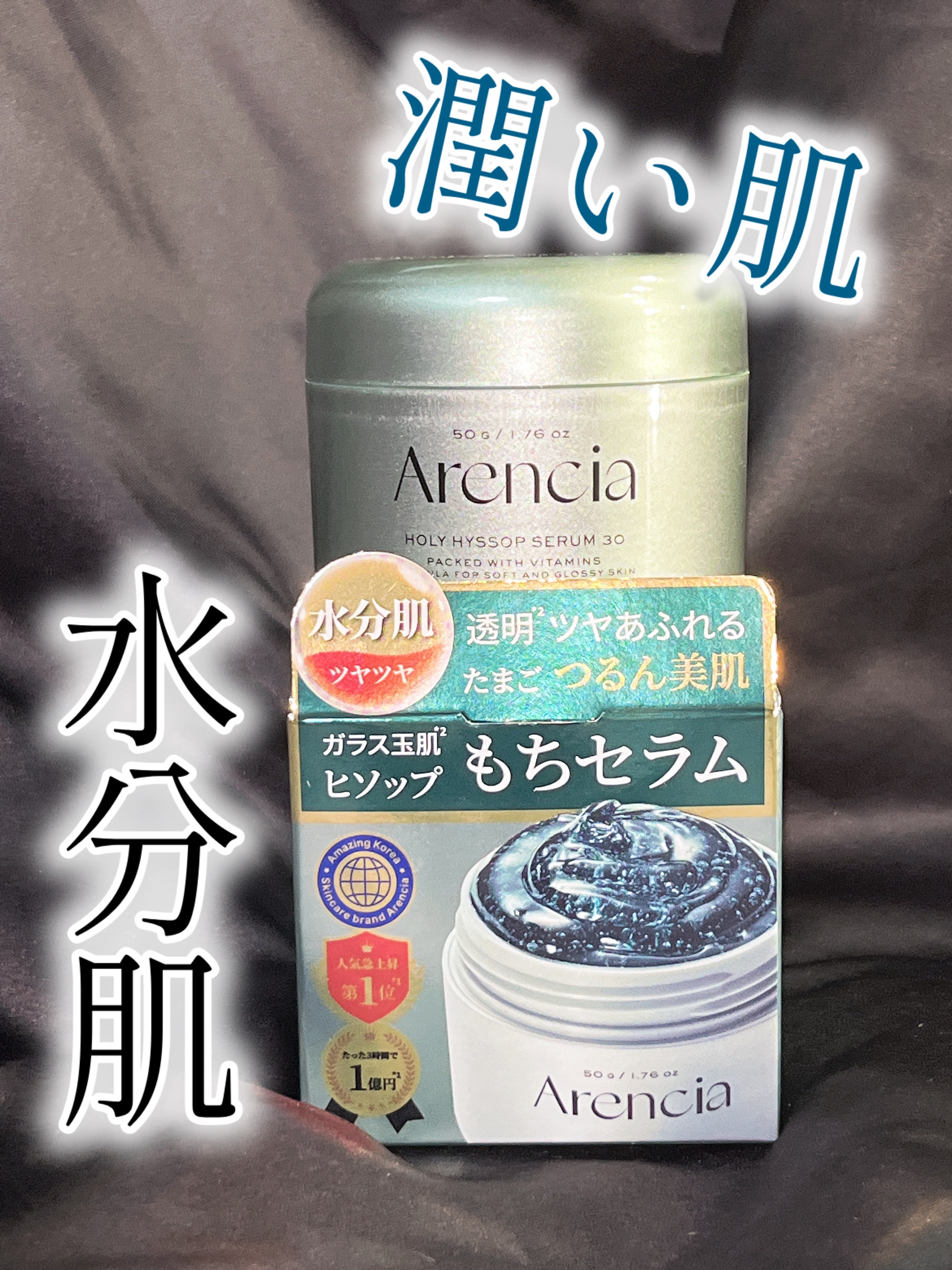 Arenciaアレンシアヒソップもちセラム🌙夜のスキンケアになめらかな肌へ導くナイトセラム🫧透明グリーンの綺麗なゲルフランス産ヒソップエキス×VitaminACEComplex®で年齢肌やくすみが気になる方の頼れる一滴💫使い方は夜スキンケアに...