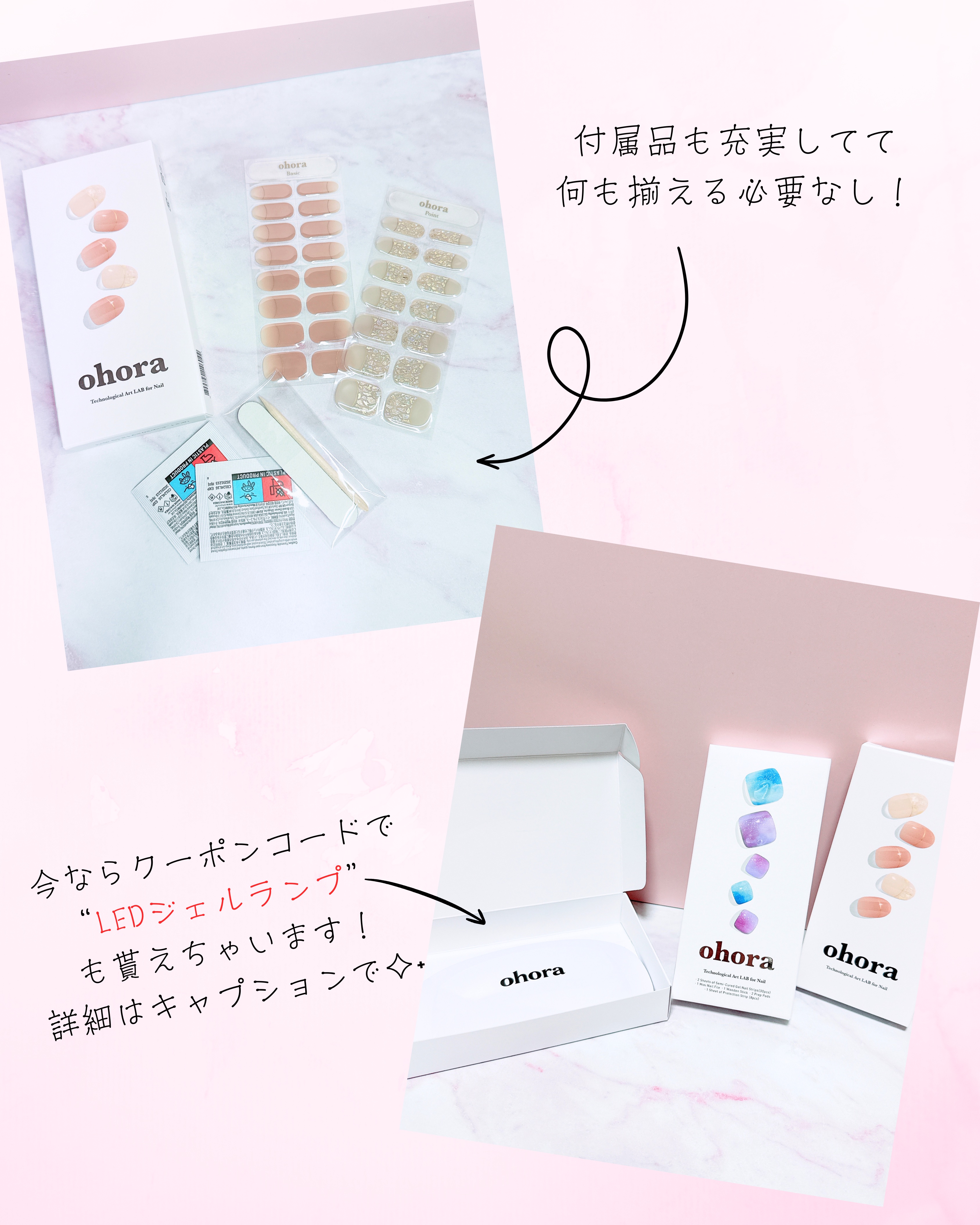 ohora昔、セルフでジェルネイルしてたけど簡単なデザインしか出来ないし、道具をたくさん揃えたりが大変で💦ohoraのネイルシールだと、貼った後にはみ出た部分をカットしてジェルランプで硬化するだけ!貼って固めるだけで凝ったデザインが簡単に完成...