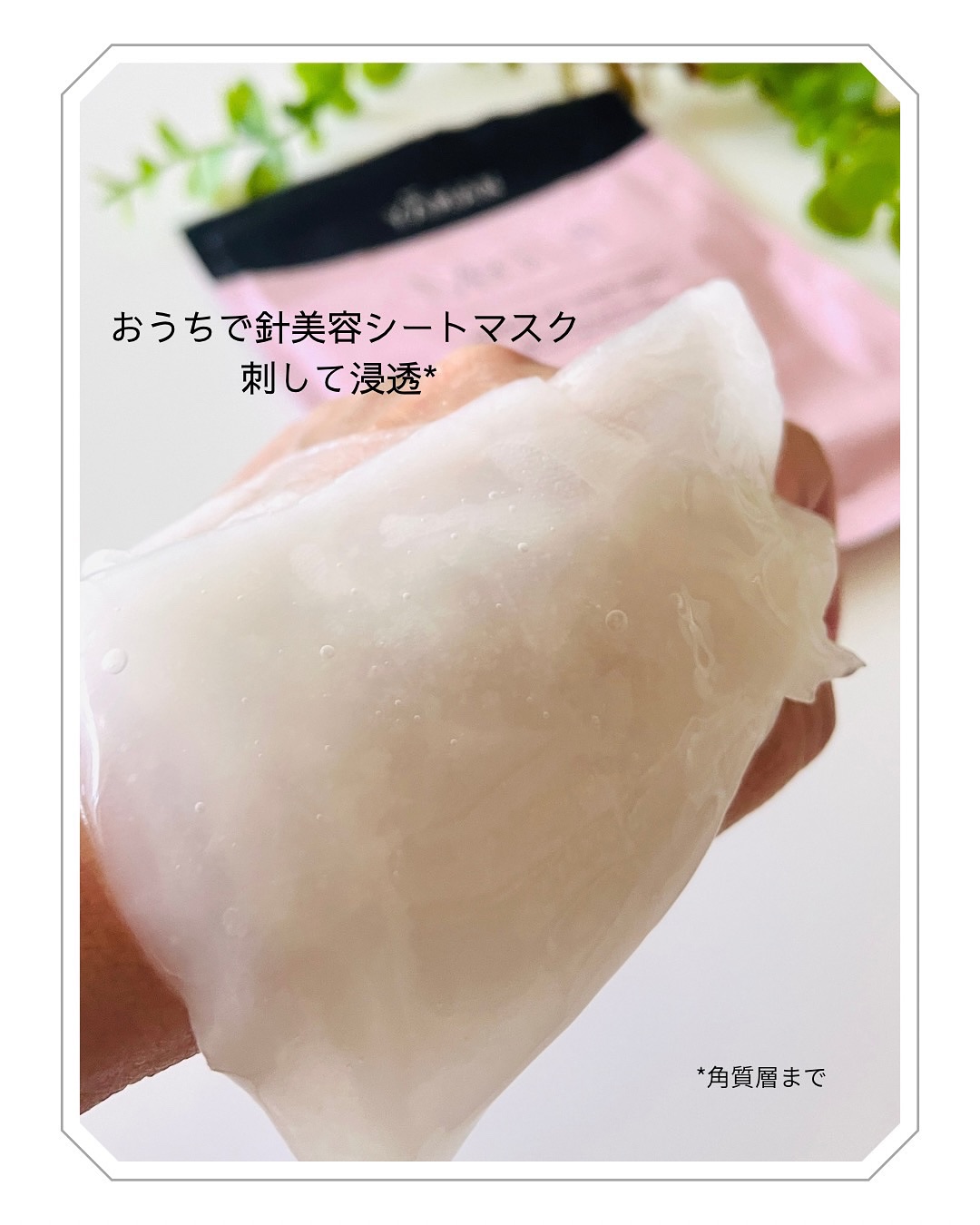 - ✔ 1回のお手入れで約14,000本*⁵のマイクロニードル*⁴が肌のすみずみにアプローチ。 約14,000本*⁵のマイクロニードル*⁴が肌のすみずみにアプローチ。 美容成分をまとわせた天然由来のマイクロニードル*⁴が肌に刺さる*²ことで、美容成分の浸透*²をサポート。 「刺す*2」アプローチをすることで、塗布した時よりも美容成分の浸透率をアップ*⁶させます。 ✓ 6種のハリ成分を浸透型*²ナノカプセル技術で、肌に届ける。 エイジングケア*⁷成分として注目されている6種のハリ成分を採用。 ハリ成分をナノカプセル化することで成分の安定性を保ったまま、肌のすみずみ*²まで効率よく届けます。 ナノカプセル成分が浸透し*²、肌をキュッと引き締めて、みなぎるハリ肌へ導きます。 ✔ 1袋に150mlの美容液を使用。とろみのある濃密な美容液が肌を包み込み、ハリを与える。 7枚のシートマスクに150mlのたっぷりの美容液を含侵。 とろみのある濃密な美容液が肌に密着し、肌にうるおいを届けて、みずみずしいツヤとハリ感を与えます。 また、密着性・保液性に優れた国産のシートマスクが美容液をしっかり抱え込み、肌に吸い付くように密着。 美容液を逃さず、肌にたっぷり美容成分を届けます。 *² 角質層まで *⁴ 加水分解カイメン(整肌成分) *⁵ シートマスク1枚あたりの配合本数。製造上、本数には若干の変動があります。 *⁶ 実施機関:株式会社 lg-M 本社ラボ 実施期間:2021年2月1日~2021年3月31日 ニードルリフト皮膚浸透試験結果 *⁷ 年齢に応じたケア