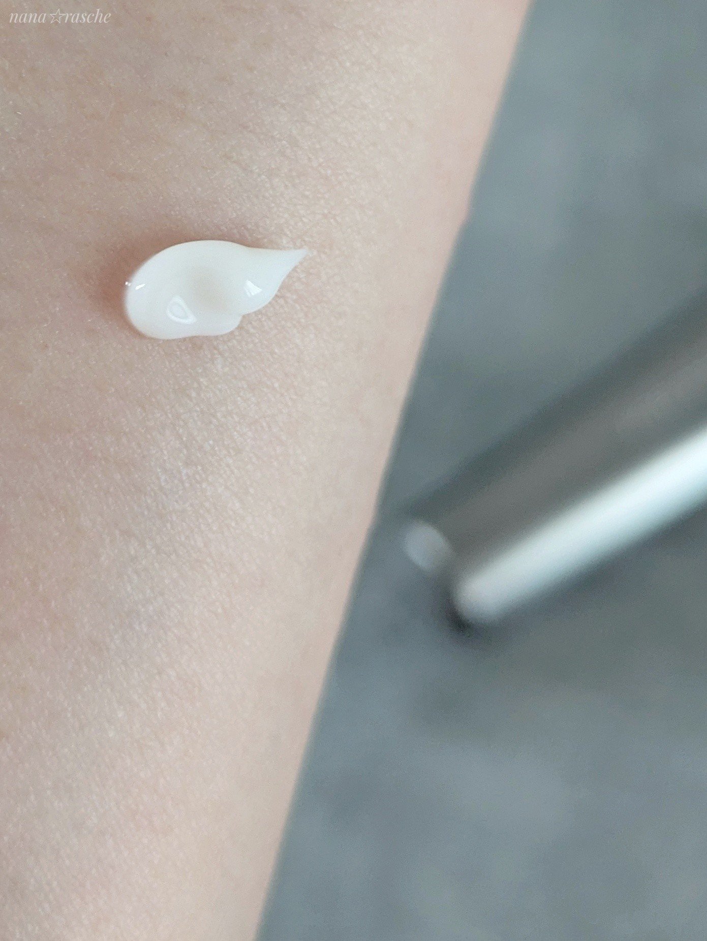 使用量の目安は直径約1cm みずみずしくのびるので、面積広めの私の顔でも十分な量です。 平日はこのあとファンデーションを使用し、休日はフェイスパウダーのみで過ごしていますが使用感・仕上がりともに大満足のUV乳液です。 但し目に入るとしみるので、使用時は目に入らないよう気をつけて下さいね😉