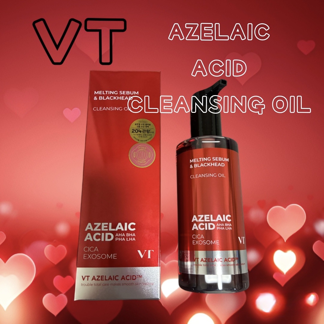 - 最近話題の毛穴ケア・整肌成分アゼライン酸!VTからはクレンジングオイルが登場! ポイントメイクまで落とすしっかりした洗浄力で、毛穴・皮脂までケアし保湿まで叶える一石三鳥アゼライン酸クレンジングオイル。 19種の植物性オイル*1も配合で、目に見えるブラッドヘッド*2から、隠れているホワイトヘッド*2、皮脂まですっきりケアします! ダブル洗顔不要! ※パッケージリニューアル ■このような方へおすすめ メイク・毛穴までディープクレンジング求める方 クレンジングでスキンケアまで行いたい方 ツッパリ感の少ないクレンジングを探していた方 ブラックヘッド*ケアも行いたい方 *1ダイズ油、アルガニアスピノサ核油、ユズ果実油、コメヌカ油、オタネニンジン種子油、アーモンド油、ザクロ種子油、リンゴ種子油、ホホバ種子油、ツバキ種子油、、バオバブ種子油、ユチャ種子油、ベニバナ種子油、ヒマワリ種子油、ヒポファエラムノイデス油、オリーブ果実油、アボカド油、アンズ核油、クロフサスグリ種子油(いずれも保湿) *2古い角質による