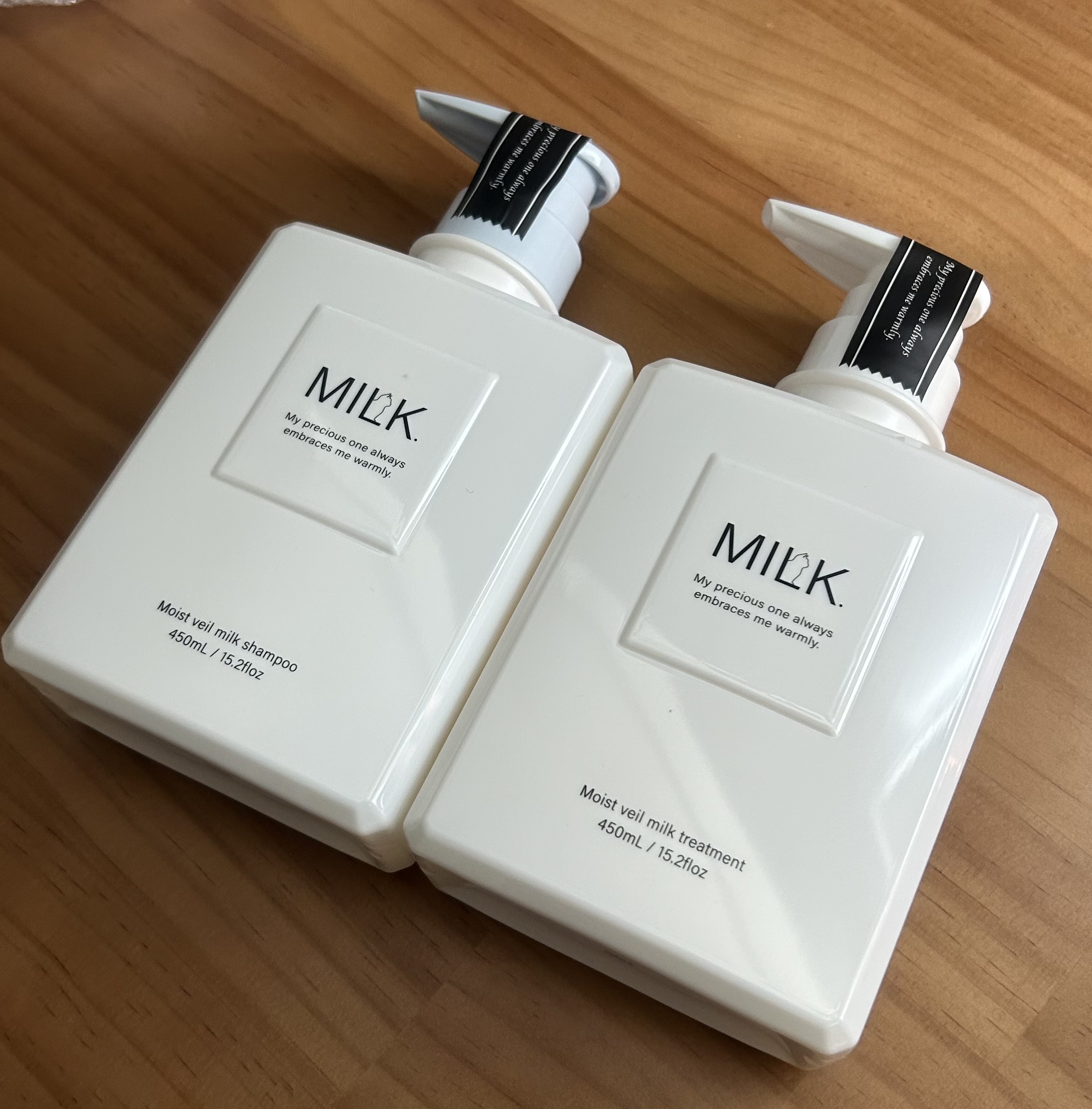 #PRMILK.(@MILK_b_jp)様のプレゼントキャンペーンに当選し🤍モイストヴェールシャンプー🤍トリートメント🤍ヘアミルクの3点セットをいただきました🙌独自のモイストヴェールミルク処方(ミルク膜)で髪をやさしくケア◎無香料タイプで香り...