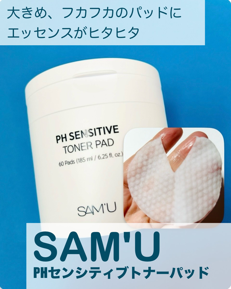 【SAM"U】アンバサダーとしての投稿です。#PR💧PHセンシティブトナーパッド⚪️pHバランス処方の✧5重ヒアルロン酸×パンテノール&アラントイン配合**保湿・整肌成分⚪️直径70mmの厚めのトナーパッドでたっぷりエッセンスのやわらかい肌触...
