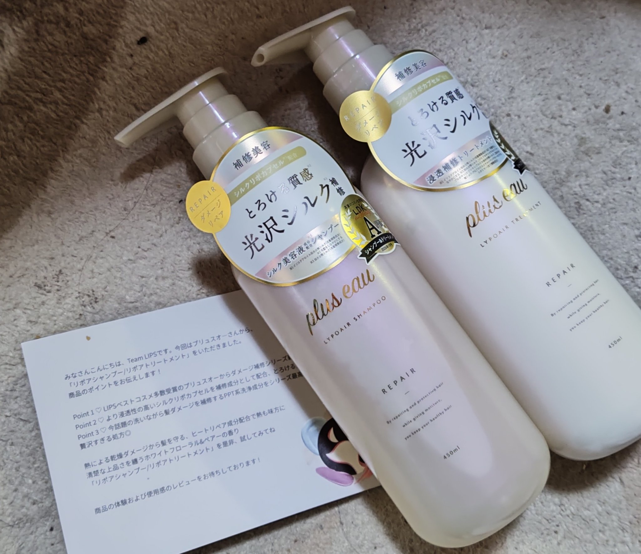 【pluseau🫧】リポアシャンプー/リポアトリートメントリップスさんよりpluseauさんのシャンプー/トリートメントを提供していただきました🥰LIPSベストコスメ多数受賞のプリュスオーからダメージ補習シリーズが新登場✨トゥルンっとした仕上...