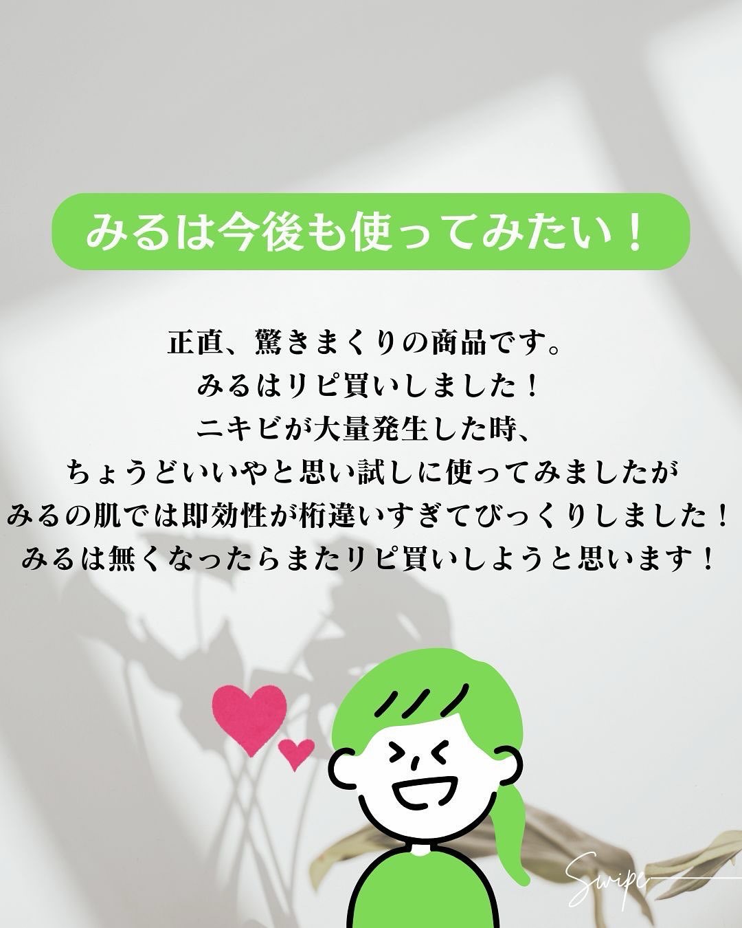 | とろみのあるテクスチャーだけど、肌にのばすとさらっとしていてみずみずしい使用感だよ☺️ | 詳細を見る | |