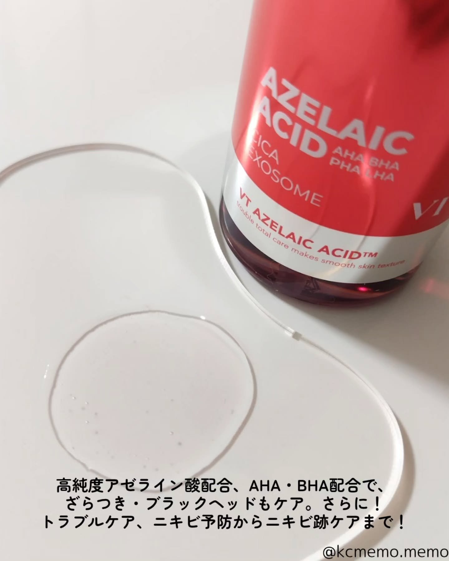 - 最近話題の毛穴ケア・整肌成分アゼライン酸!VTからはクレンジングオイルが登場! ポイントメイクまで落とすしっかりした洗浄力で、毛穴・皮脂までケアし保湿まで叶える一石三鳥アゼライン酸クレンジングオイル。 19種の植物性オイル*1も配合で、目に見えるブラッドヘッド*2から、隠れているホワイトヘッド*2、皮脂まですっきりケアします! ダブル洗顔不要! ※パッケージリニューアル ■このような方へおすすめ メイク・毛穴までディープクレンジング求める方 クレンジングでスキンケアまで行いたい方 ツッパリ感の少ないクレンジングを探していた方 ブラックヘッド*ケアも行いたい方 *1ダイズ油、アルガニアスピノサ核油、ユズ果実油、コメヌカ油、オタネニンジン種子油、アーモンド油、ザクロ種子油、リンゴ種子油、ホホバ種子油、ツバキ種子油、、バオバブ種子油、ユチャ種子油、ベニバナ種子油、ヒマワリ種子油、ヒポファエラムノイデス油、オリーブ果実油、アボカド油、アンズ核油、クロフサスグリ種子油(いずれも保湿) *2古い角質による