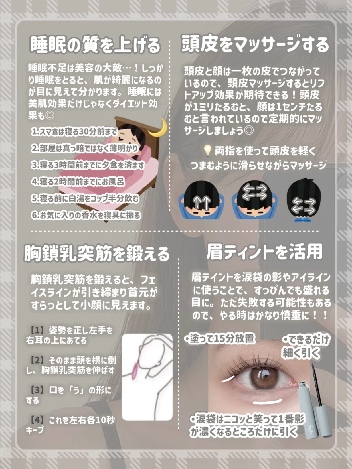 やり方は画像を見てみてください! よりぷっくりさせたい方は、最後にコンシーラーの1番左のカラーを涙袋に塗ると◎ 黄味がかったアイシャドウが似合わない方は01番の方がいいかもしれないです。 ラメを使わない完全マットなので、ナチュラルメイクやスクールメイクにもおすすめ✨