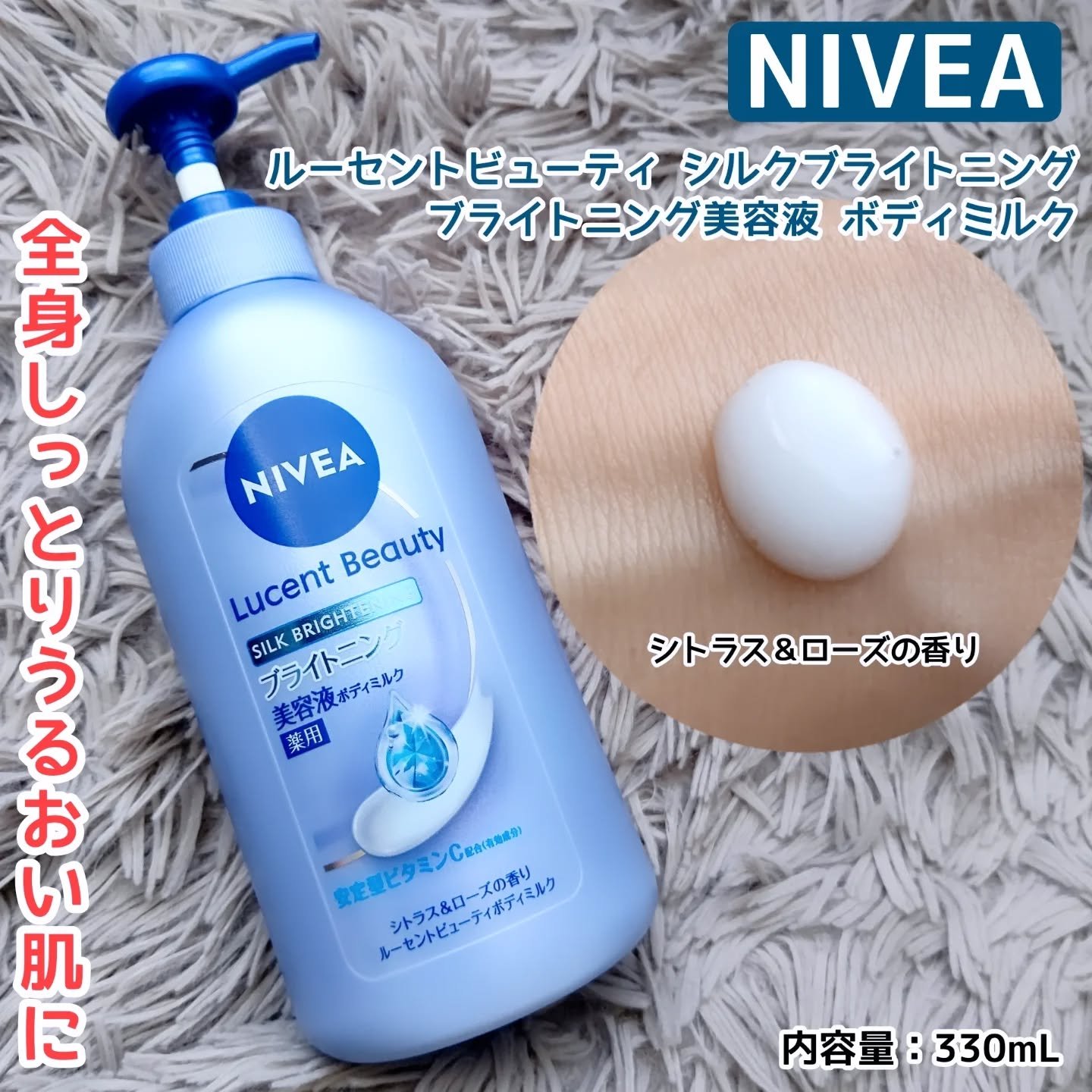 - うるおって透明感あふれる美肌へ導く、高保湿美容液ボディミルクシリーズ。 ニベアが考えるボディの美肌の鍵「キメ・つや・なめらかさ」にアプローチ。 うるおいに満ちて透明感のある肌に導く。ヒアルロン4G美容液成分※1 配合(保湿) 【医薬部外品】薬事販売名ニベアプレミアムセラムボディミルクシルクブライトニング 絹のようになめらかにうるおって明るい印象の透明美肌に。乾燥してくすみがちな肌に、みずみずしいうるおいが長続き。 有効成分(安定型ビタミンC)配合。メラニンの生成を抑え、シミ・そばかすを防ぐ。 ルミナスEP成分配合:エクトイン、真珠たん白抽出液※2、PG(すべて保湿) 乾燥してくすみがちな肌にうるおいを与えます。 気分満たさせる、上質で爽やかなシトラス&ローズの香り ※1 ヒアルロン酸、グリセリン、グリコーゲン、グリセリルグルコシド、酢酸キトサミン ※2 パールカルクエキス