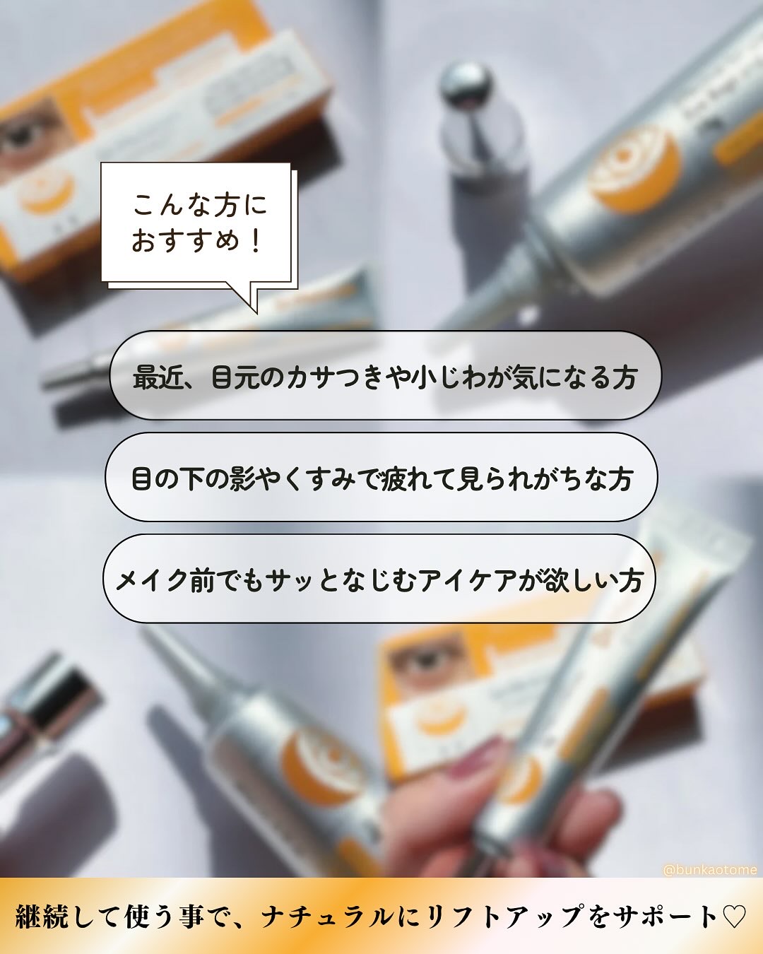 | スキンケアランキング第194位 | 目もとの肌にハリとみずみずしさを与え、キメを整えてくれる♡♡ | 詳細を見る |