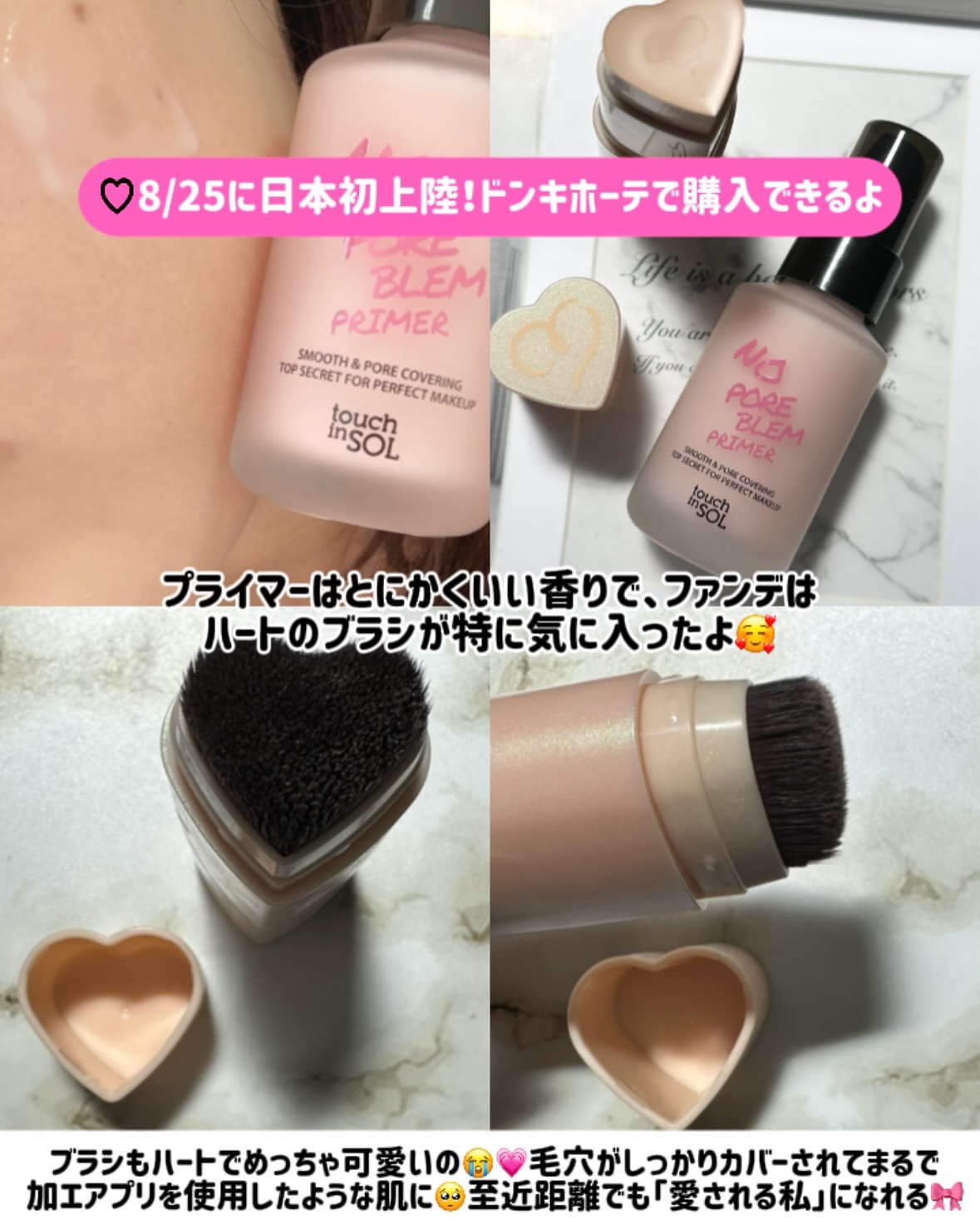 \8/25、日本初上陸!/ついにドンキホーテで手に入るノーポアブレムプライマー&スティックファンデ#リネン💖毛穴消失レベルのカバー力✨プライマーを塗った瞬間、毛穴がふっとぼけるようにカバー。まるで加工アプリを使ったような肌で、至近距離でも「愛...