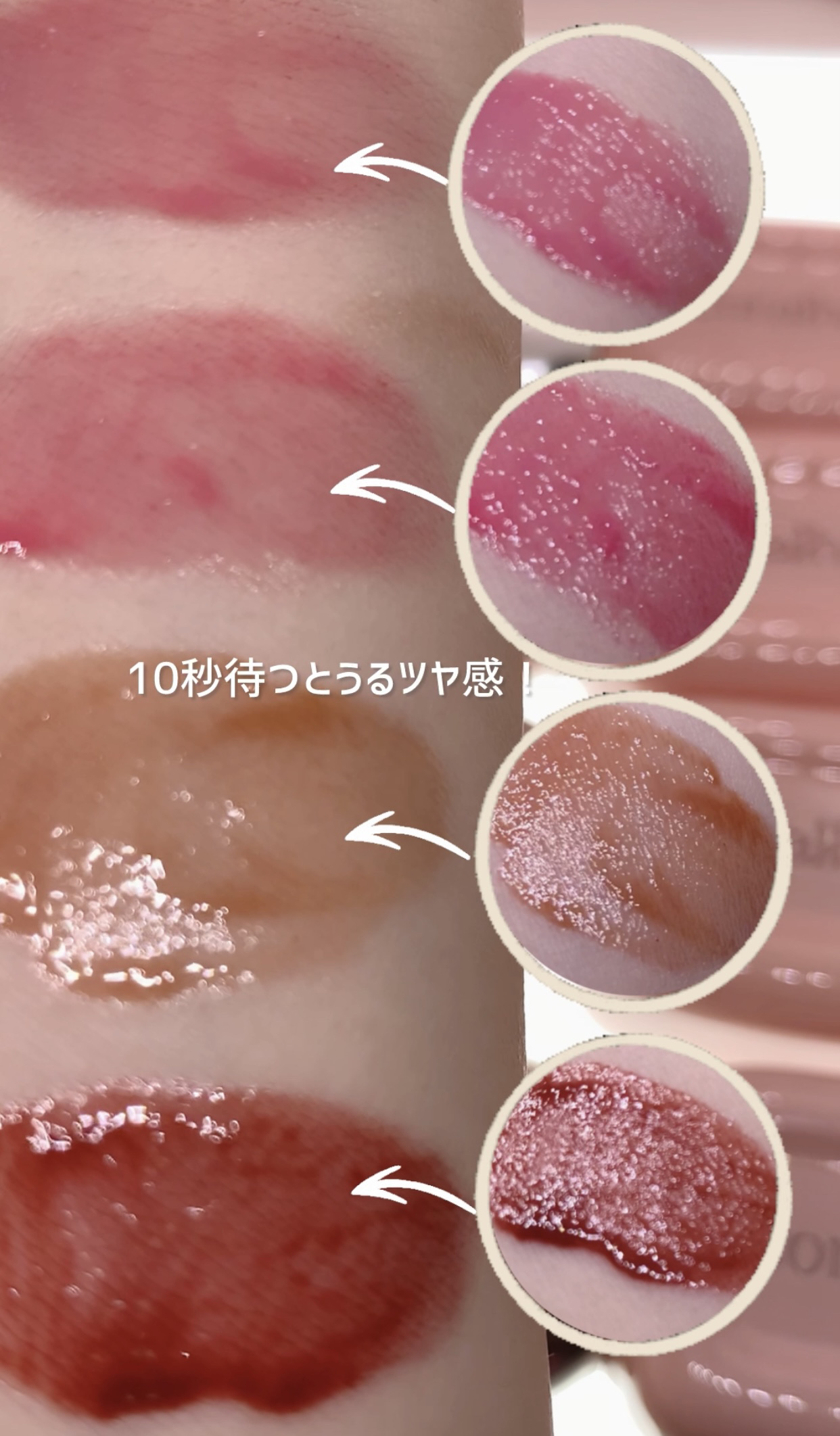 | 中身はゼリーみたいなテクスチャーで ぷるんとしたツヤタイプのティント。 | 詳細を見る | |
