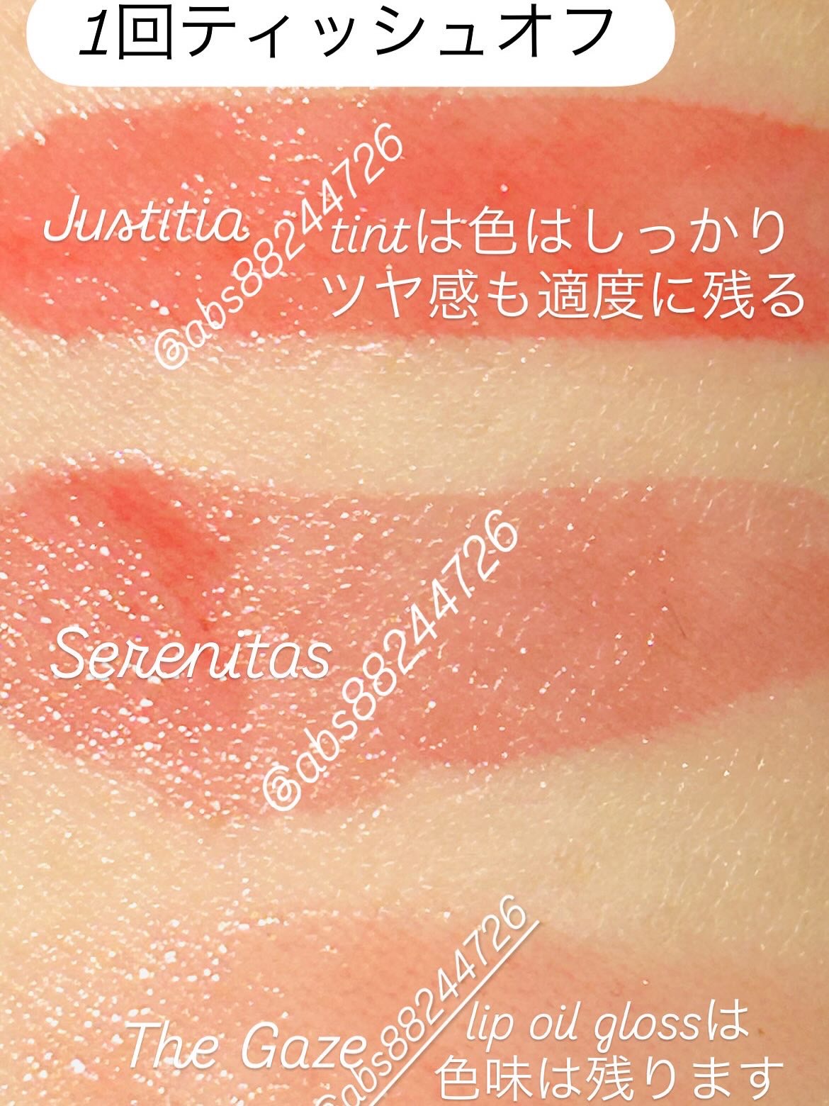 本当ツヤッツヤのメロティントで 可愛いんですよ!!!!!! しかもこのツヤ感と水分感が長時間keepできて 乾燥せず、まさにオアシス水分ツヤティントです!!! 室内自然光一度塗りだとこんな感じで 見たままの綺麗な発色をしてくれるんですよ! そして一回ティッシュオフではツヤ感も残り 2回ティッシュオフしても綺麗に色味が残ります!! アプリケーターもちょうど良いサイズ感で 塗り易いですし! 以前のETUDEさんのティントよりも機能性が進化しているそうです!!!